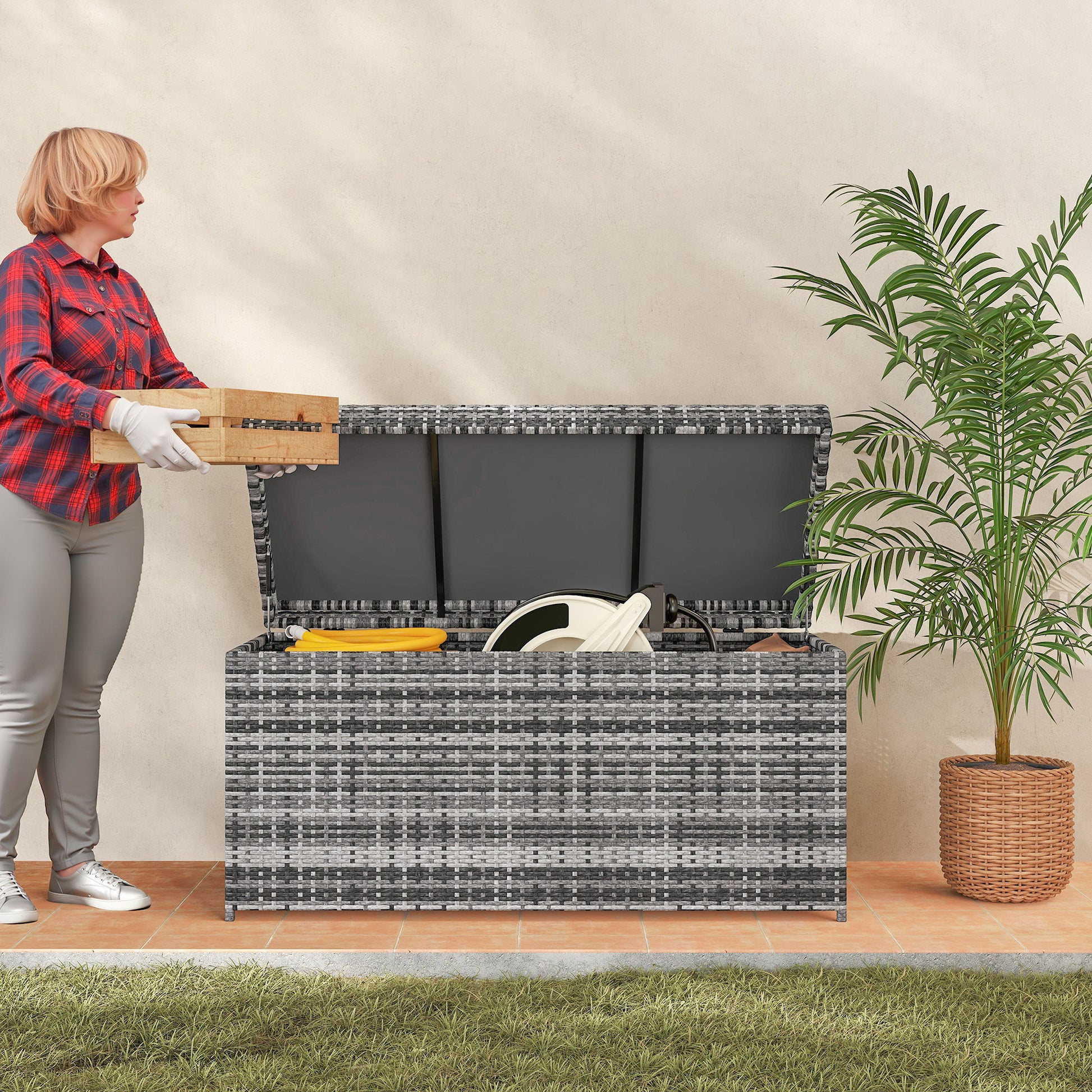 Outsunny Rattan Auflagenbox 380L vattenfest Kissenbox mit Deckel Staurum UV-beständig 130 x 61 x 65 cm Dunkelgrau