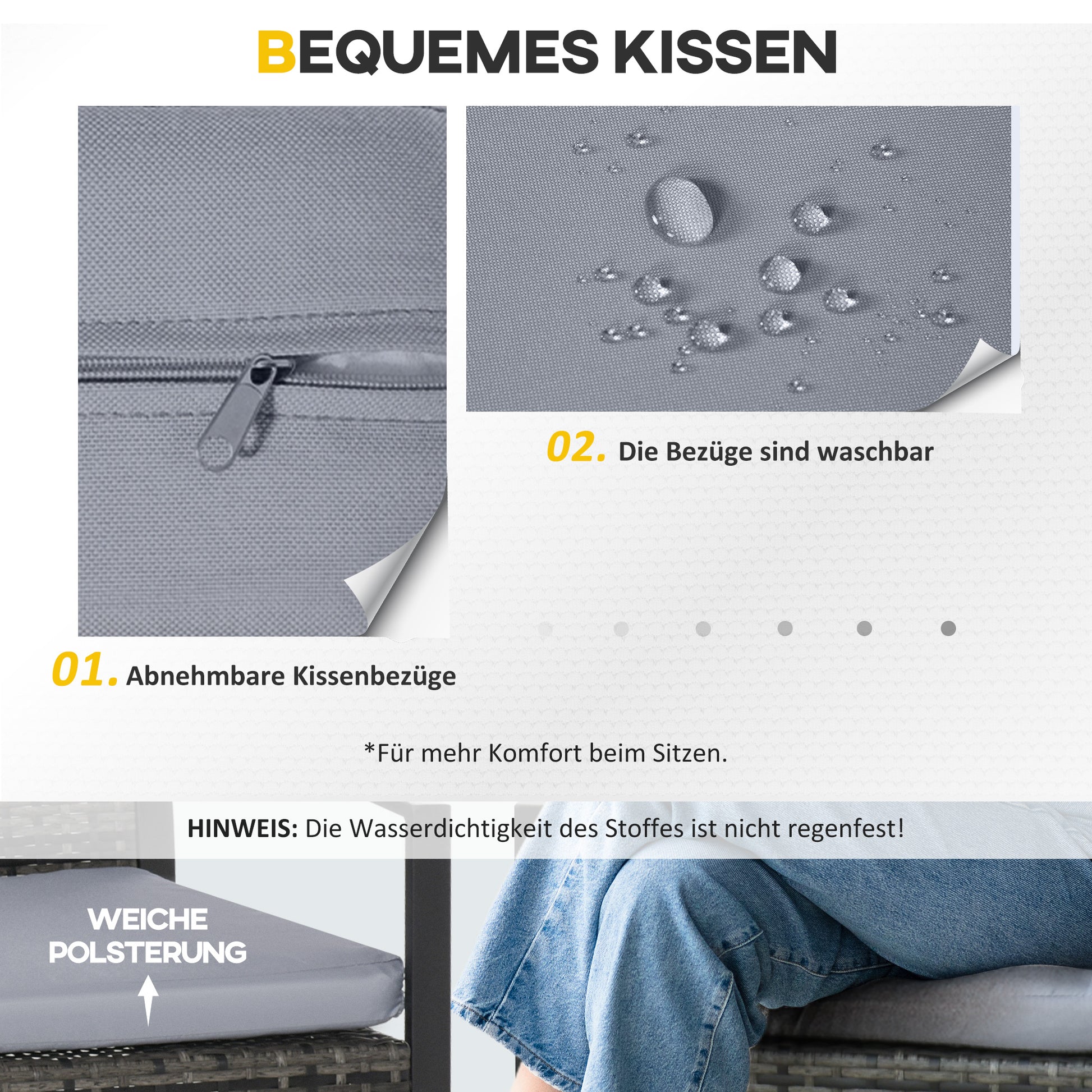 - ✔ Gepolsterte Sitzkissen mit wasserabweisenden Bezügen, Bezüge durch Reißverschluss abnehmbar und waschbar