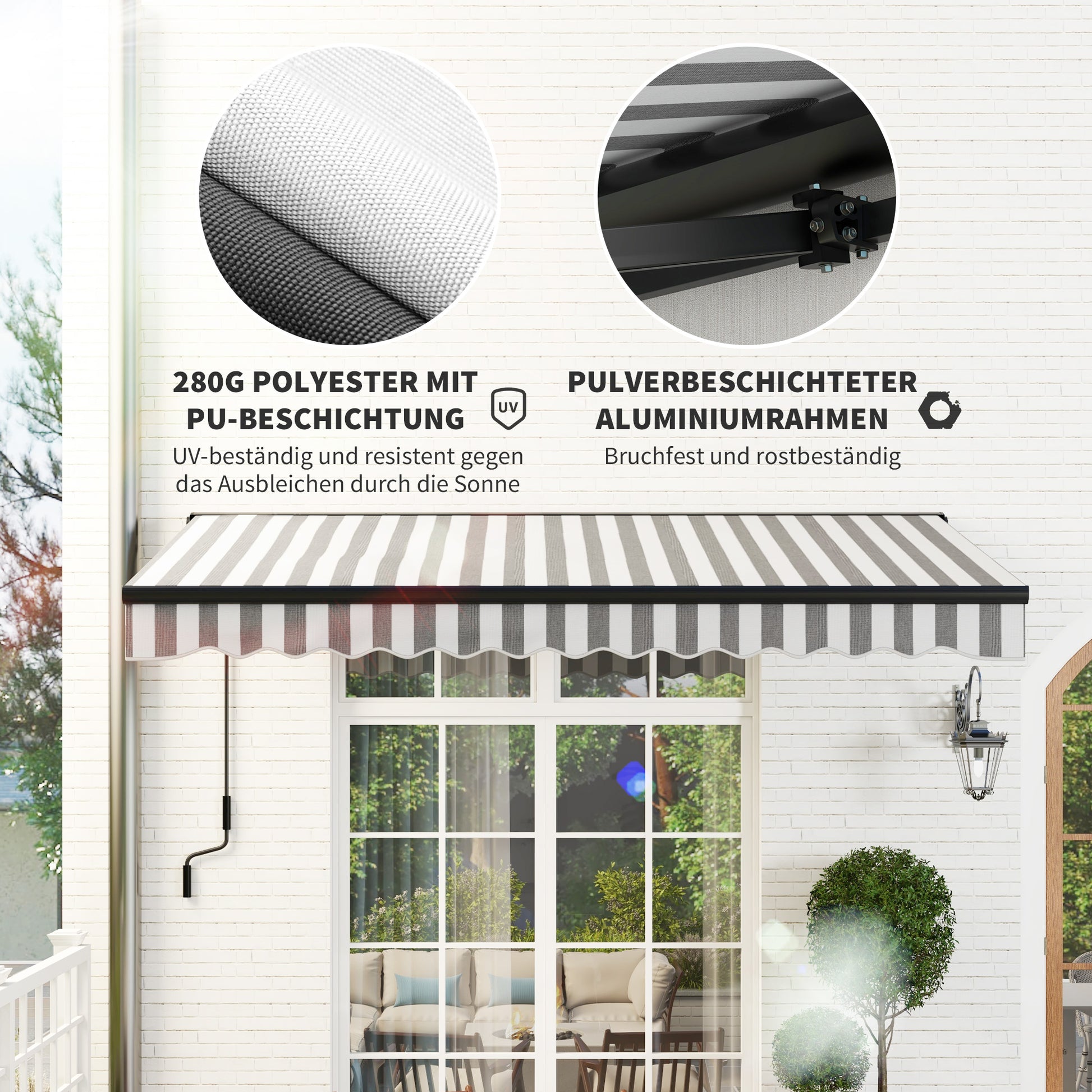 Outsunny Sonnenmarkise Markise Terrassenmarkise, wetterbeständig, 1 Handkurbel, 395 x 250 x 150 cm, Grau + Weiß