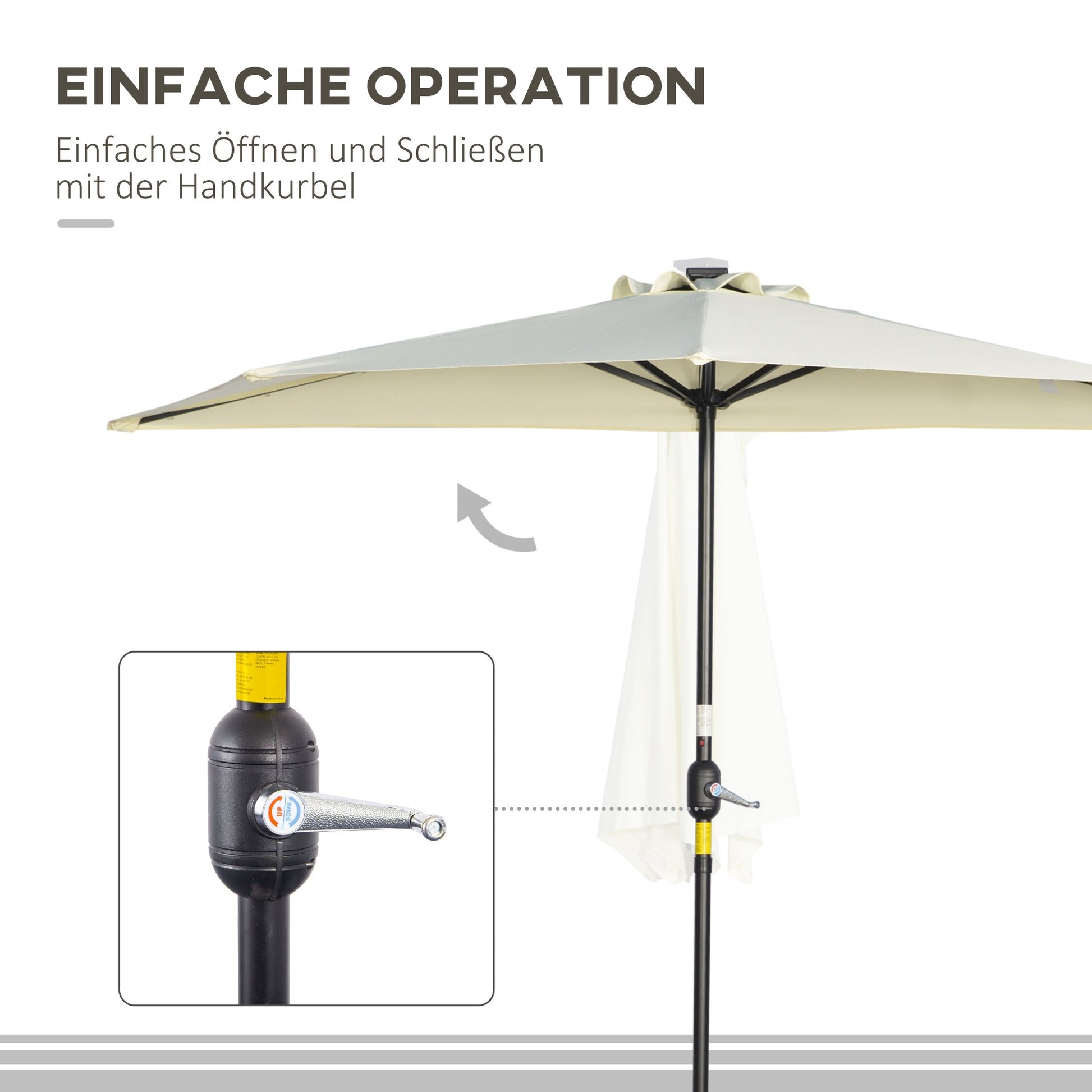 Outsunny Sonnenschirm, Terrassenschirm, halbrund, mit Solarpanel, 20 lysdioder, Handkurbel, beige, 2,70 x 1,35 x 2,40 m