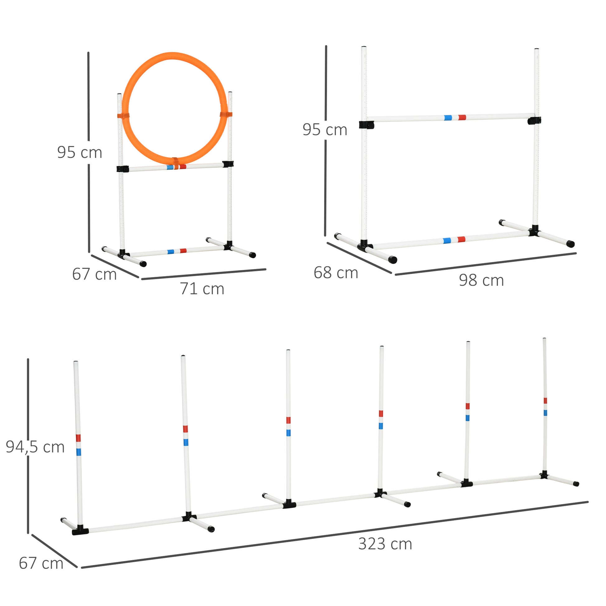 Dieses Haustier-Trainingsset von Pawhut är en storartad Möglichkeit, die natürlichen Impulse Ihrer Haustiere zu verbessern och ene enge Beziehung zwischen Ihnen und Ihren Haustieren aufzubauen. Es kann auch dabei helfen, Ihre Haustiere mit seiner vielfältigen Ausrüstung zu trainieren, einschließlich eines Hochsprungs, 6 geflochtenen Stöcken und einem verstellbaren Sprungring. Eine solide Tragetasche wird mitgeliefert, damit all Zubehörteile zusammenpassen und bequem transportiert werden können.