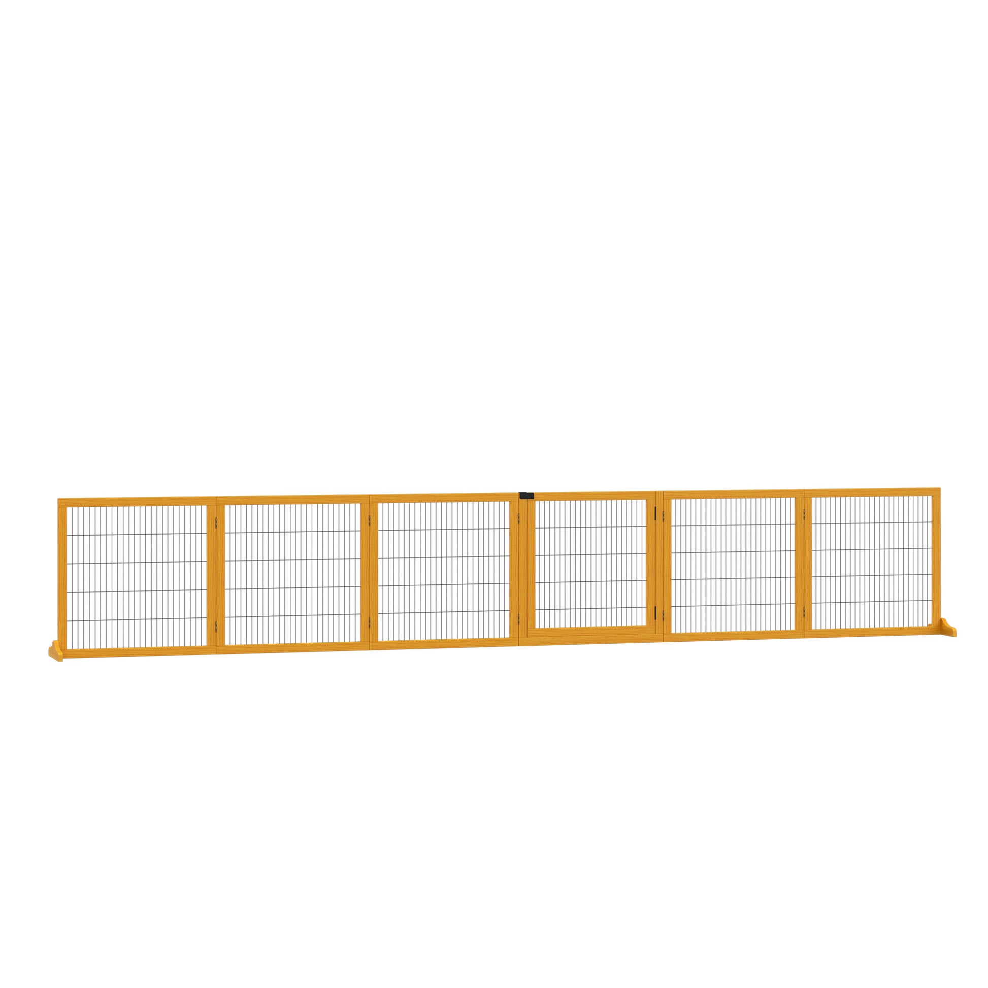PawHut Absperrgitter für Hunde, klappbar, 432 x 36 x 70 cm, Kiefernholz, Gelb