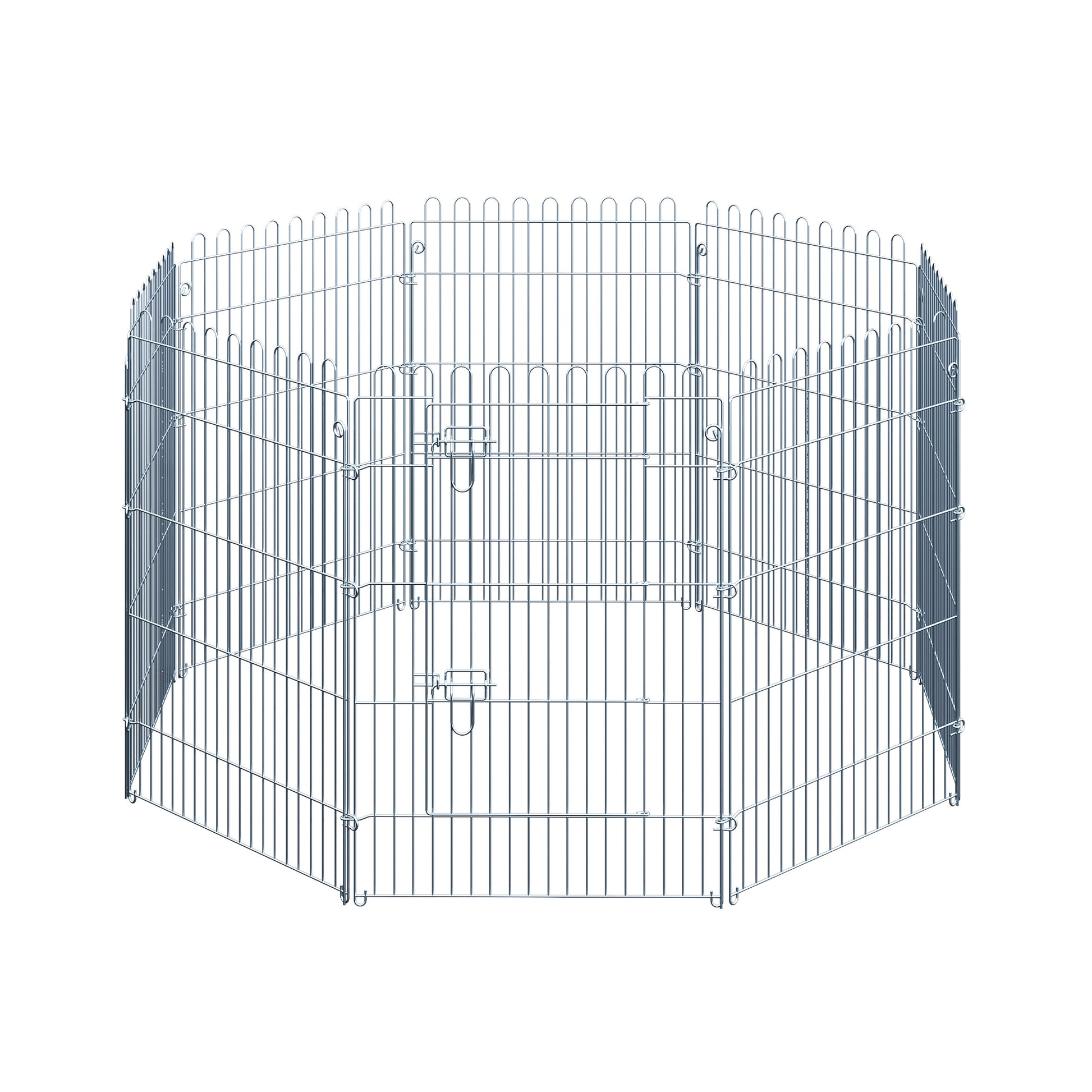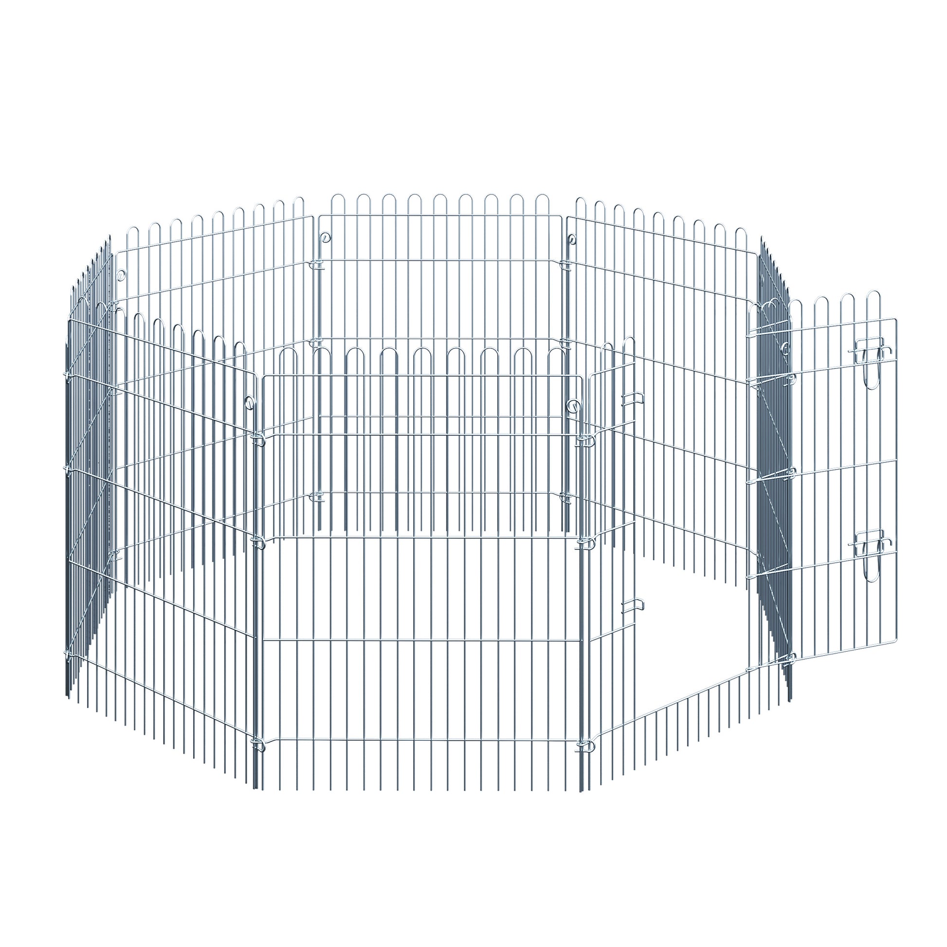 PawHut Freilaufgehege Welpenauslauf Welpenzaun Laufstall Welpengitter für Tiere 8-teilig B63 x H91 cm