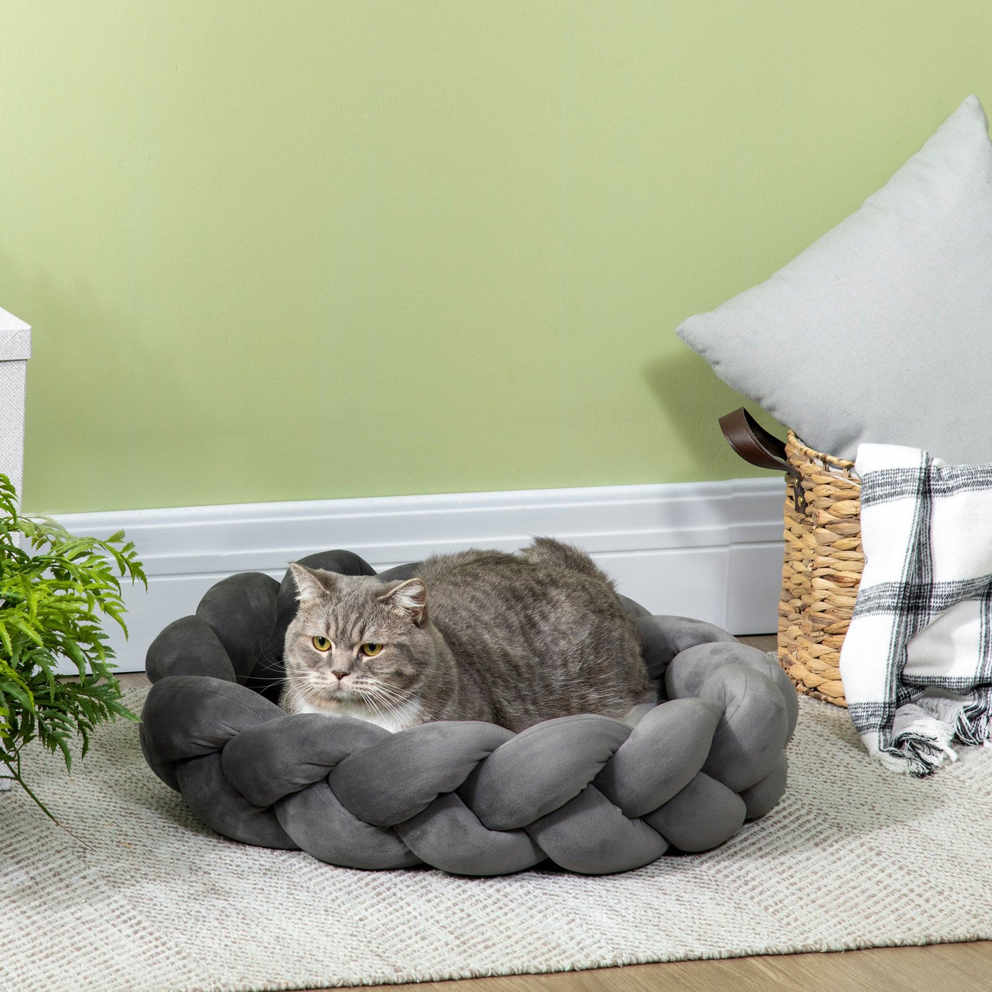 PawHut Haustierbett inkl. Kissen, Katzenbett, Hundekorb, tvättstång, 55 cm x 55 cm x 14 cm, Grau