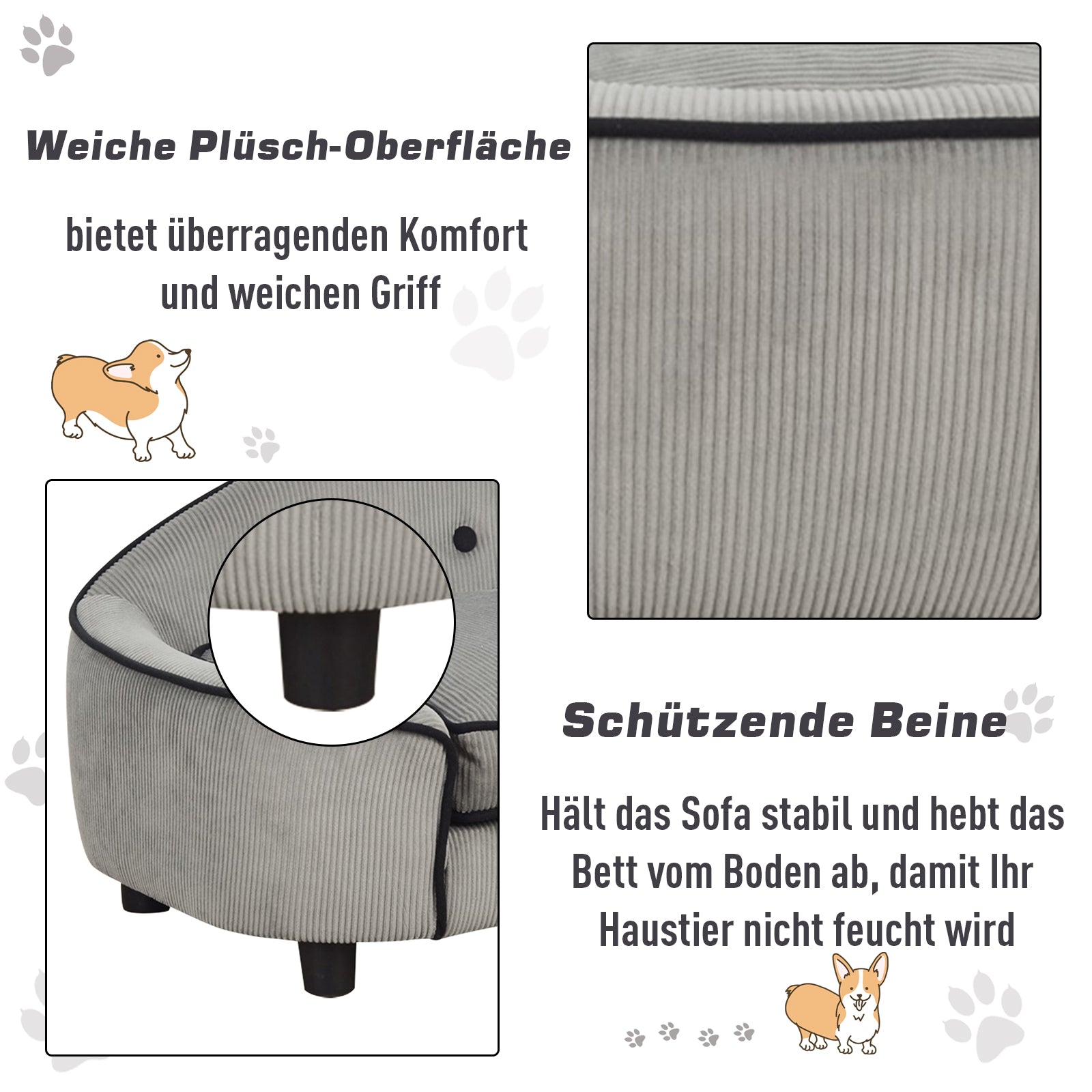 PawHut Haustiersoffa, Hundebett, Hundematte, Hundesofa, Naturholz+Plüsch, Grau, 66,5 x 45 x 35,5 cm
