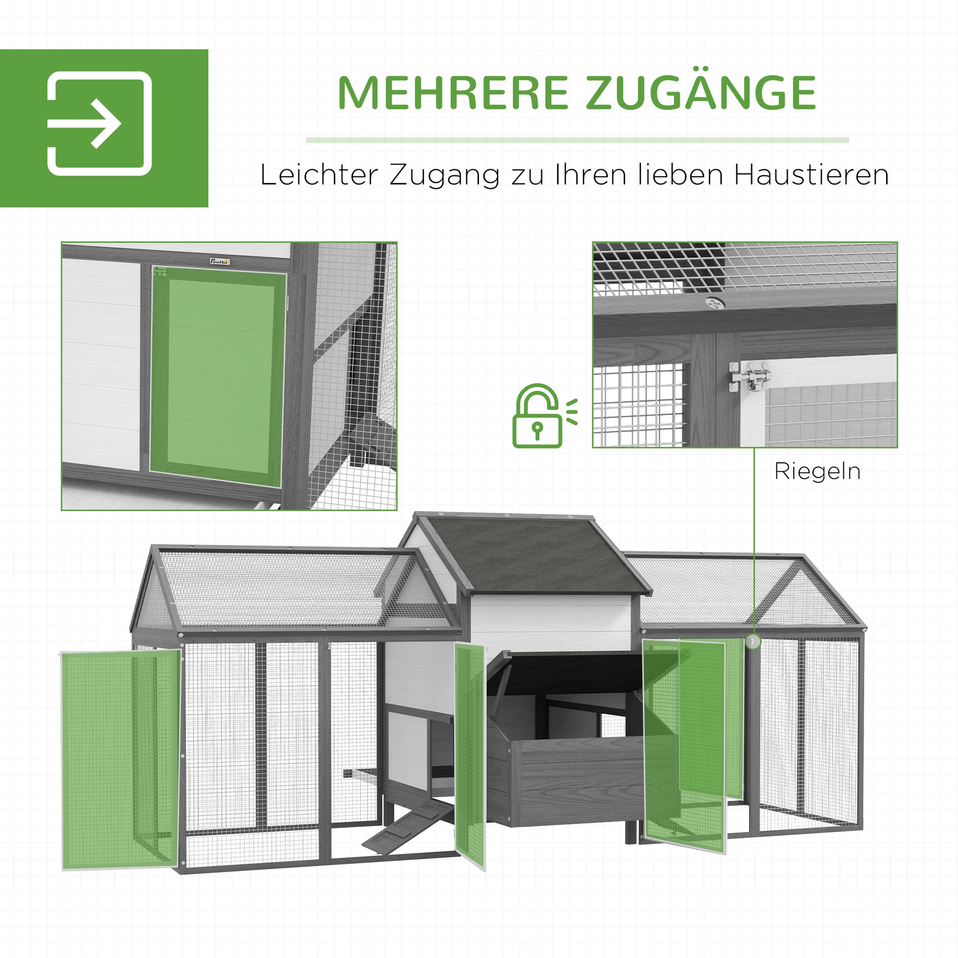PawHut Hühnerstall Kleintierstall 2 Außengehege, 1 Nistkasten, 2 Rampen, Asphaltdach, wetterbeständig, Grau