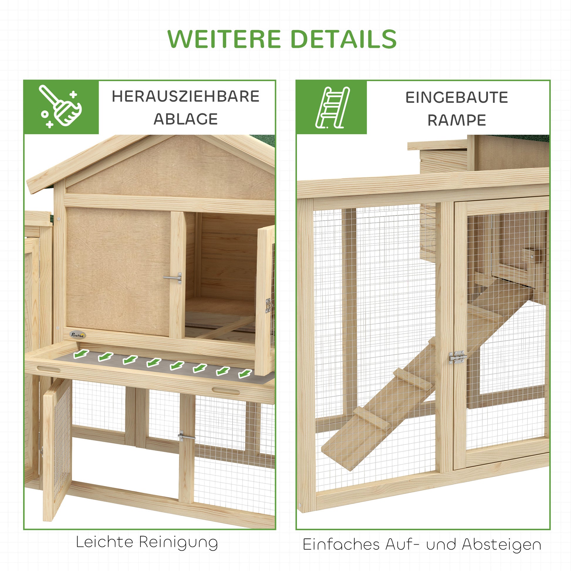 PawHut Hühnerstall mit Freigehege, inkl. Nistkasten, Rampe und Bodenwanne Tannenholz Naturholz