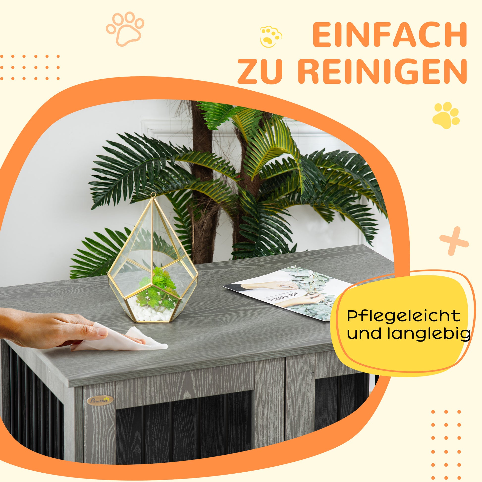 PawHut Hundebox, Haustierbox, Hundehütte mit Schloss, Magnettür, Hundehaus mit Fenster, för stora Hunde, 85 x 55 x 75 cm, Grau