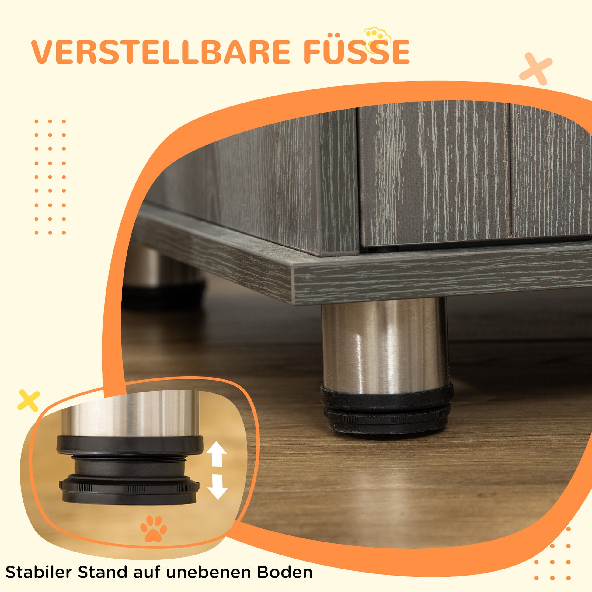 Dieser Hundekäfig von PawHut ist ein bequemer und sicherer Rückzugsort für ihren Hund. Stahlstäbe an den Fenstern sorgen für eine gute Belüftung, während der erhöhte Boden das Eindringen von Feuchtigkeit verhindert. Die magnetische Tür mit Riegeln hält sie sicher und geschützt im Inneren. Sie können den Raum verlassen, in dem Wissen, dass ihre Hunde sicher sind. En moderner Haustierkäfig, entworfen, um Ihre Haustiere zu schützen und gleichzeitig Stil in Ihr Zuhause zu bringen.