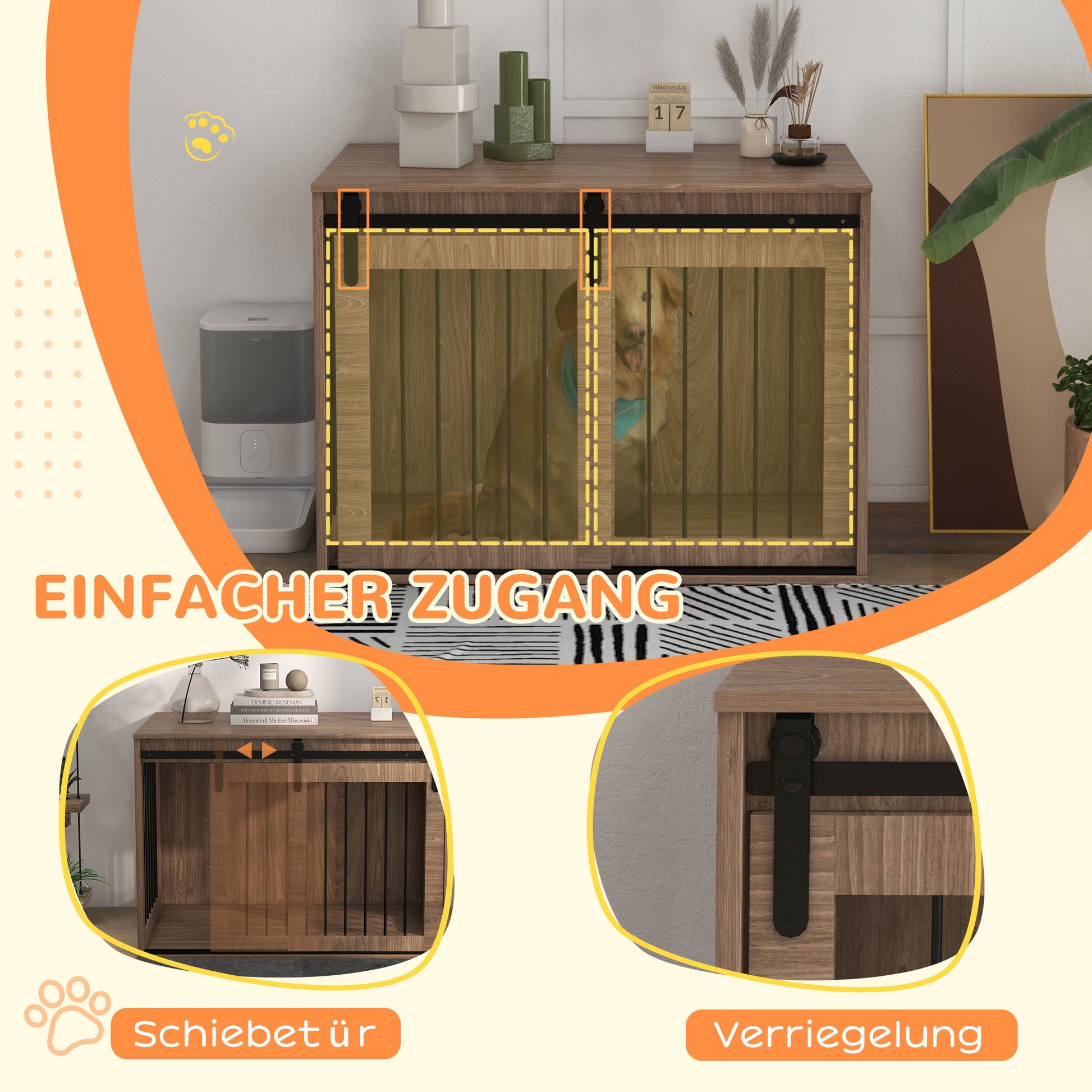 PawHut Hundebox Hundekäfig, Verriegelbar, Holzoptik, rustikales Design, 98 cm x 58 cm x 67 cm, Walnuss + Schwarz