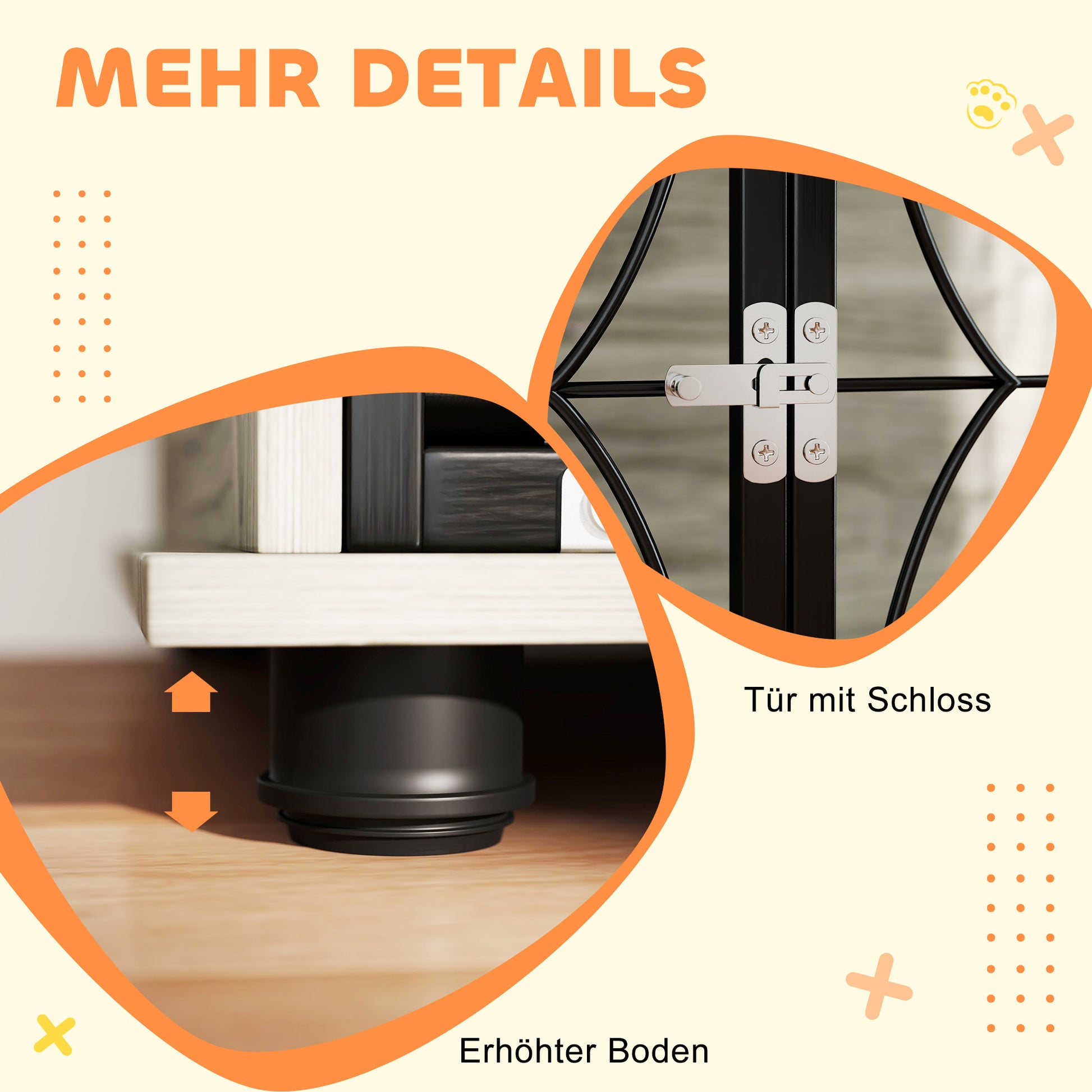 Dieser bekväm PawHut Hundekäfig mit ena waschbaren Kissen bietet großen Tieren en idealen Erholungsort. Die abschließbare Tür des Haustierkäfigs sorgt hos Haustierbesitzern für Sicherheit och das elegante Design fügt sich perfekt in jede Einrichtung ein. Nutzen Sie die große Oberfläche, um Deko-Objekte wirkungsvoll in Szene zu setzen. Dank der Seitengitter aus Draht genießen die Tiere eine gute Belüftung ohne sich eingeengt zu fühlen.