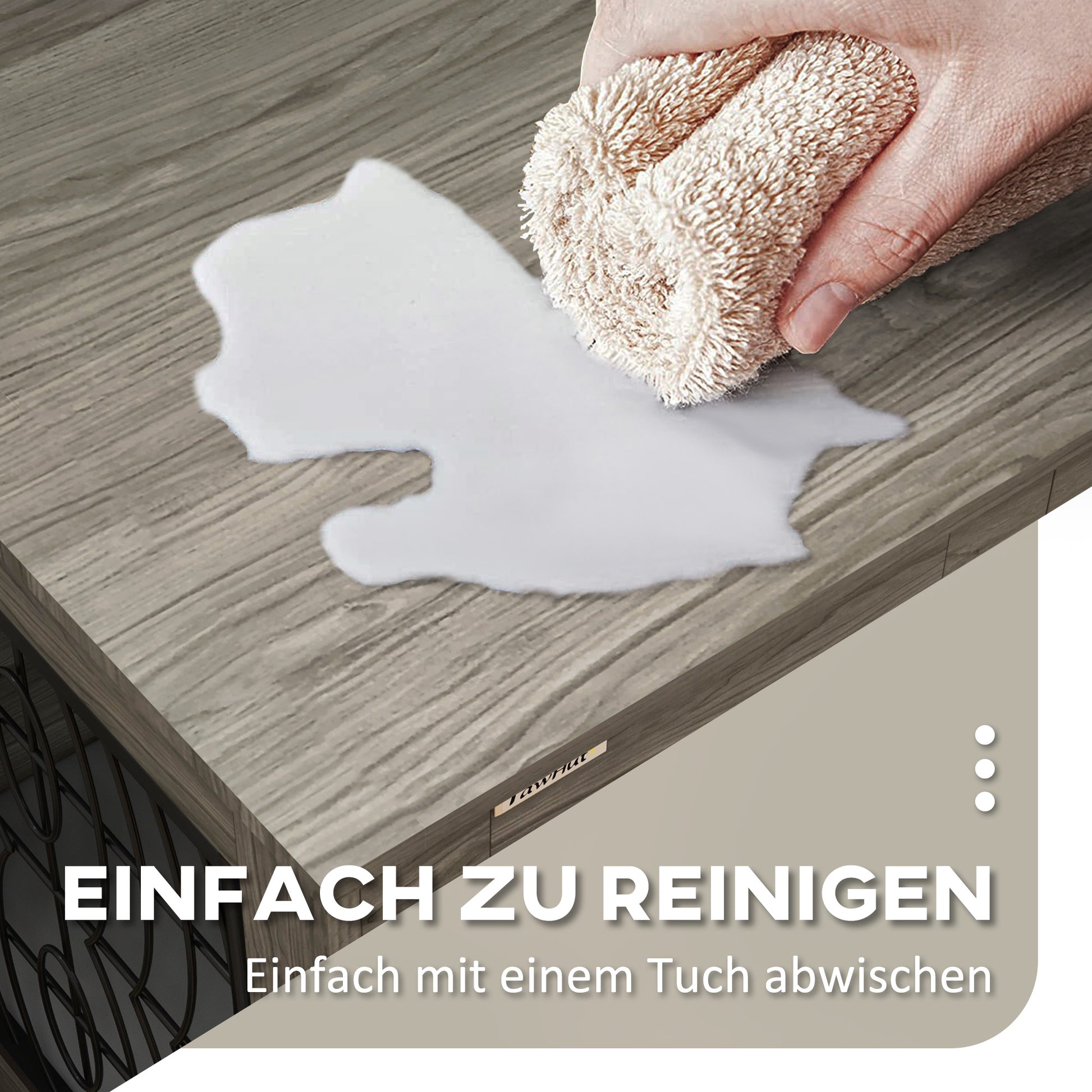 Entdecken Sie diese PawHut Hundebox - det perfekta sammansättningen av stil och funktionalitet. Diese Box bör också sökas, geborgenare Rückzugsort för Ihren Hund, under den stora obeståndsytan idealisk för Hundefutter, Spielzeuge uvm geeignet ist. Der Hundekäfig verfügt über ein waschbares, weiches Liegekissen, das maximalen Komfort für Ihr Haustier garantiert. Die vordere, verriegelbare Tür sorgt für Sicherheit, while das Gitter and drei Seiten eine hervorragende Belüftung fördert.