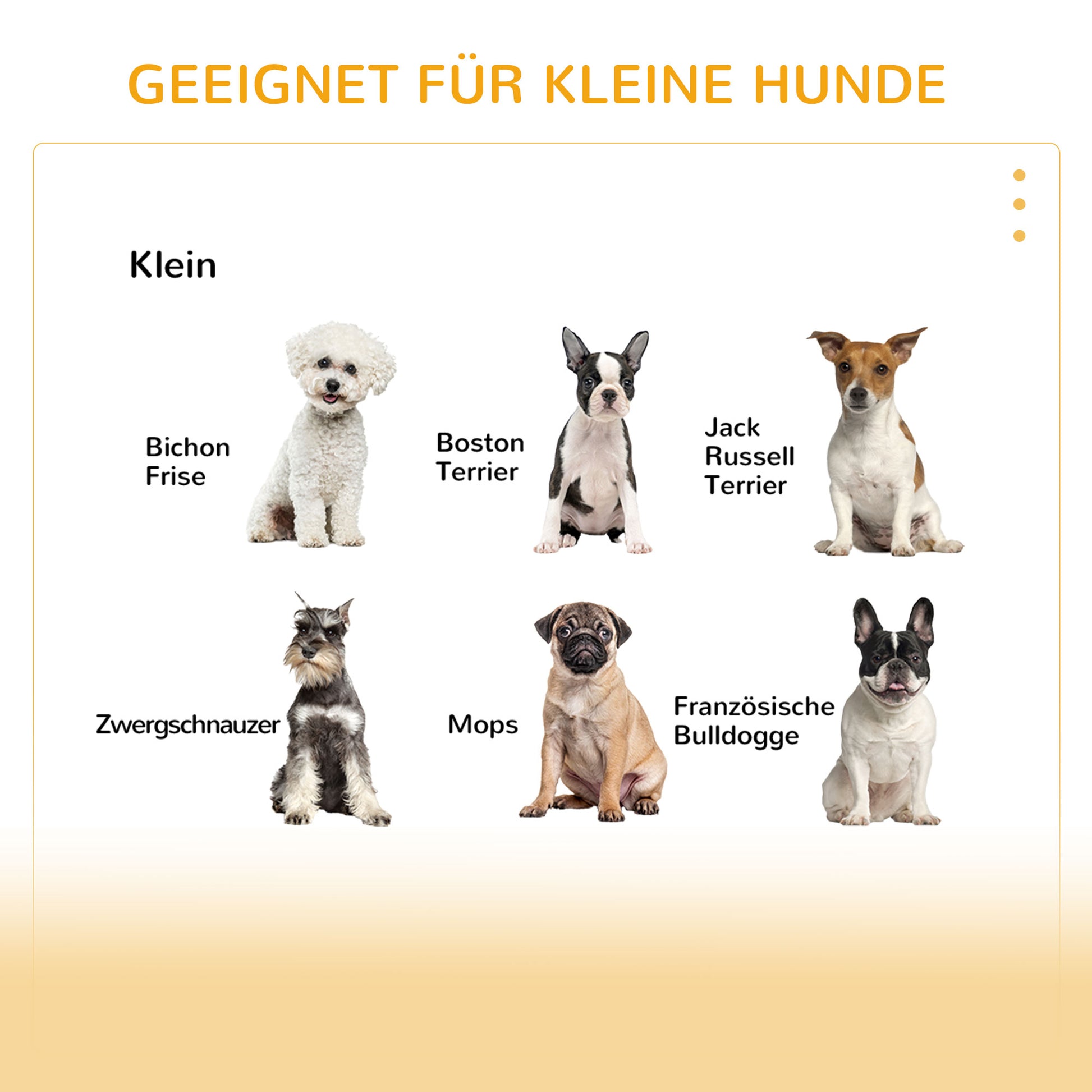 - ✔ Geeignet für small Hunde till 8 kg och bis zu ener Schulterhöhe från 50 cm.