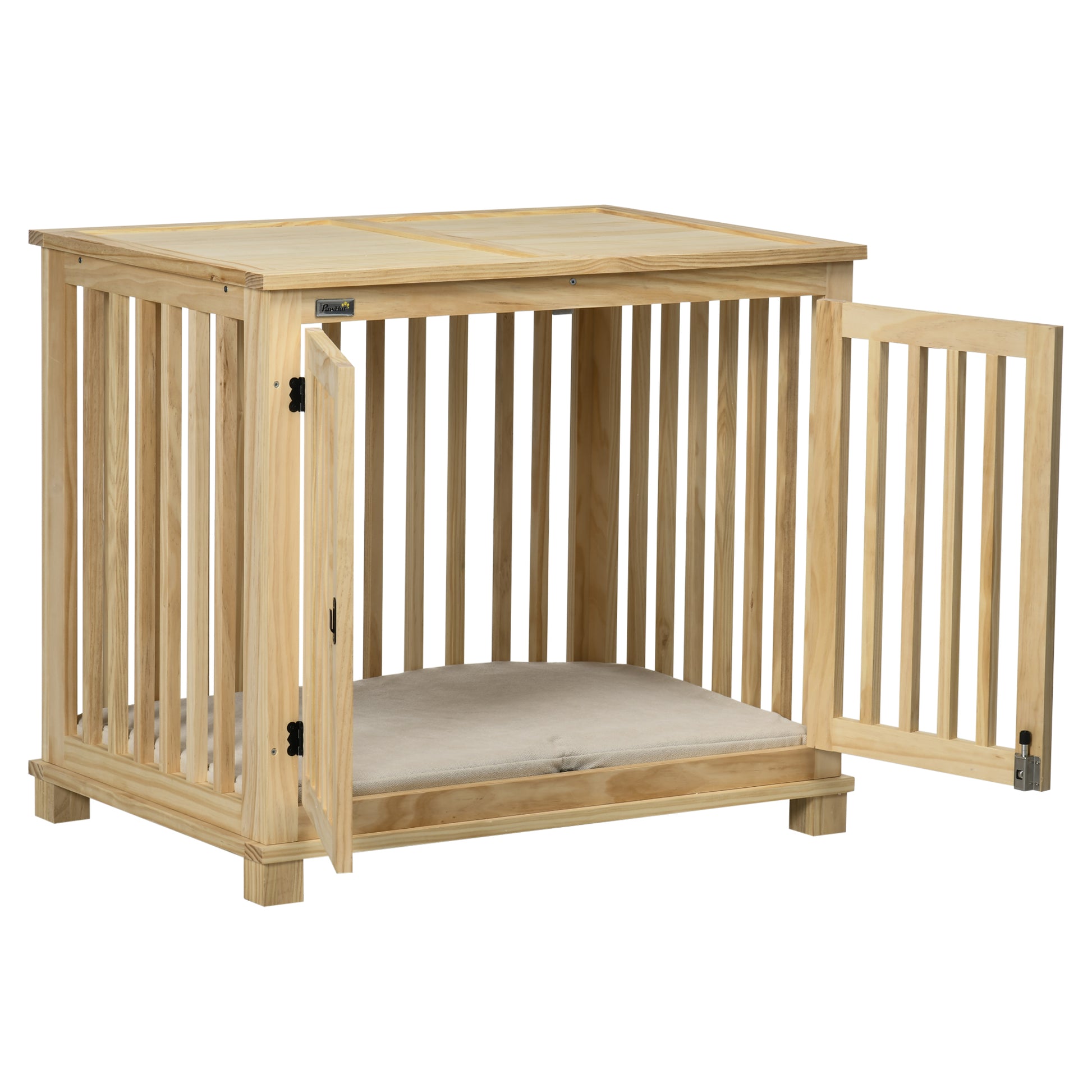 Pawhut Hundekäfig inkl. Verrieglung und Polster, 82,5 cm x 57 cm x 72 cm, Naturholz + Cremeweiß