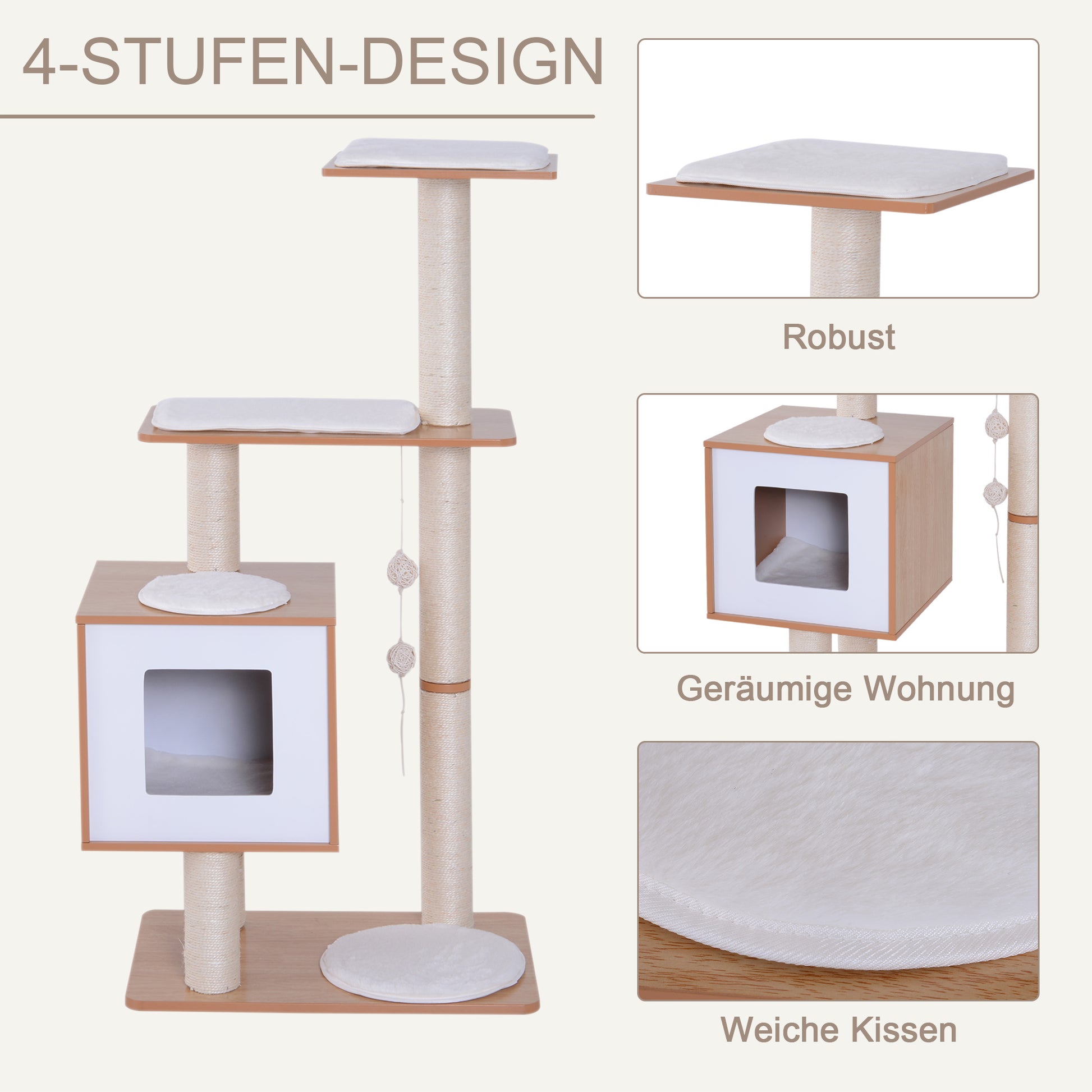 PawHut Katzenkratzbaum Katzenbaum Katzenspielzeug Kletterbaum Sisal Polster Liegefläche mit Ball Natur 71,5 x 49,5 x 120 cm