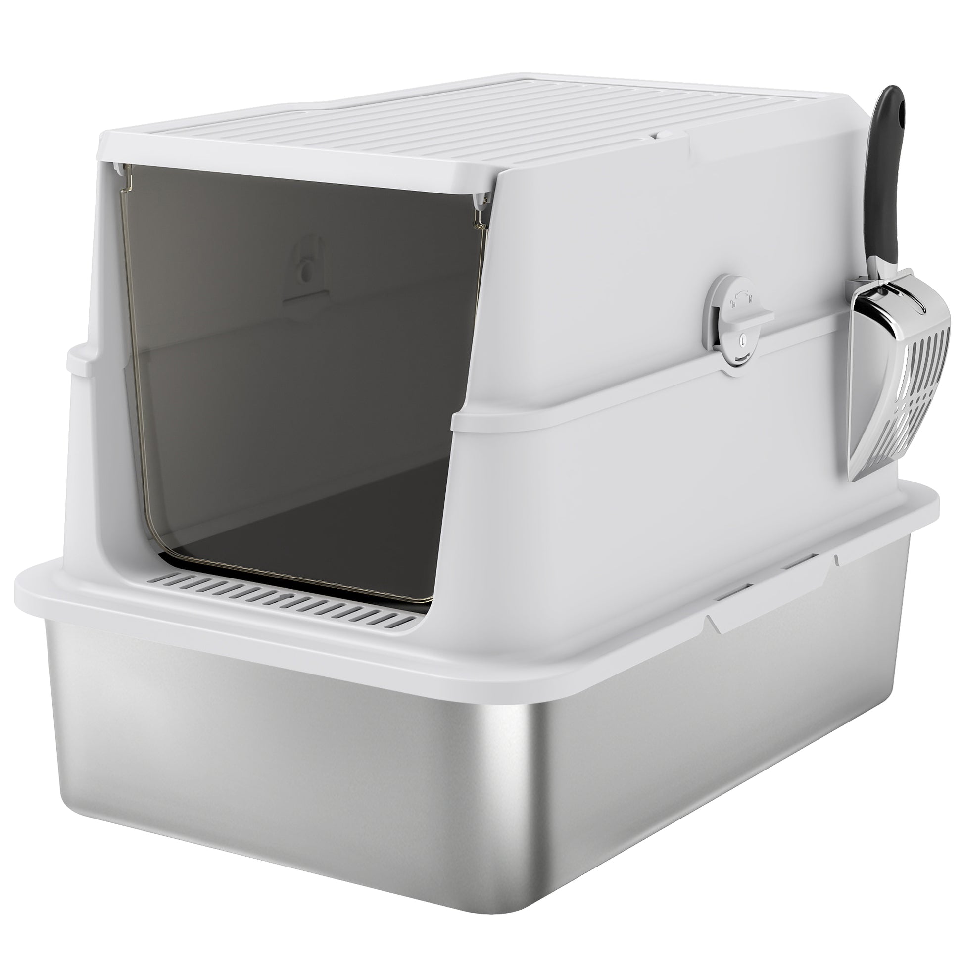 PawHut Katzentoilette, Edelstahl, XL-Innenraum, mit Schaufel, Hellgrau