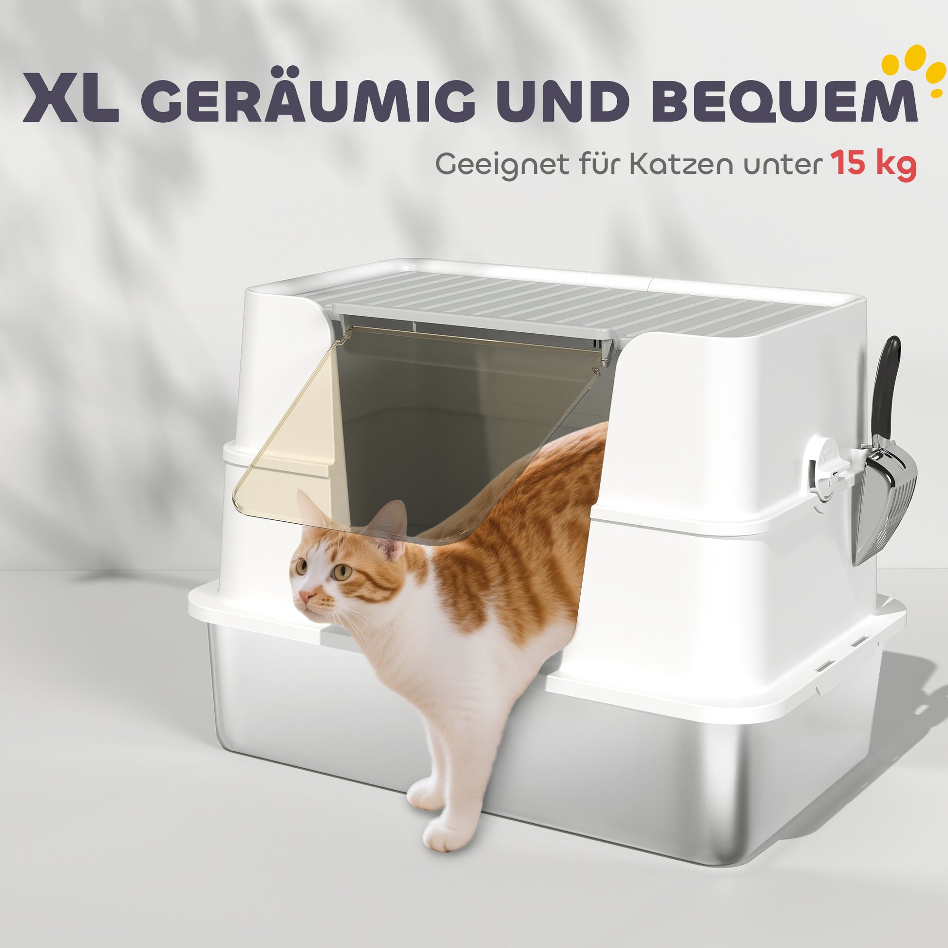 PawHut Katzentoilette, Edelstahl, XL-Innenraum, mit Schaufel, Hellgrau