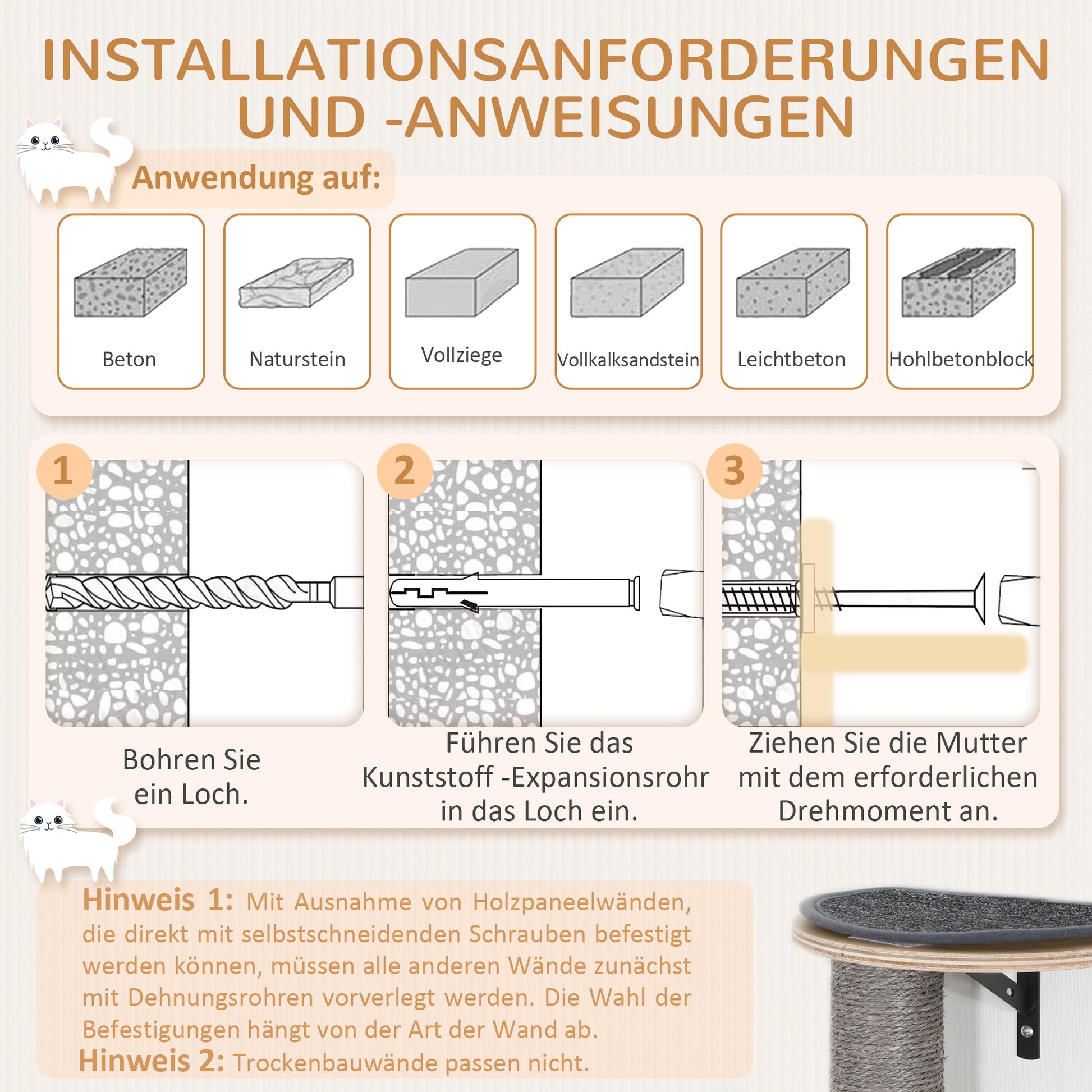 - ✔ Wandmontiertes Design des Wand-Kratzbaums spart Bodenfläche und erhöht die Privatsphäre der Katze