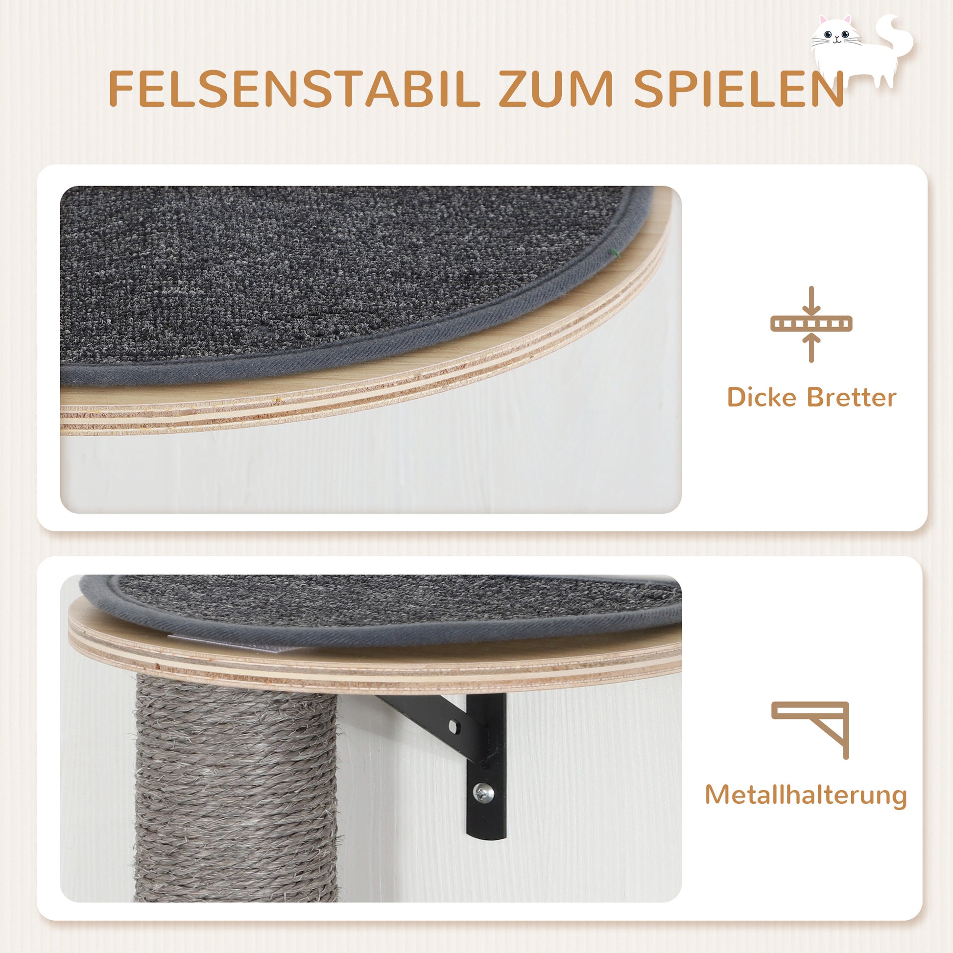 PawHut Kletterwand Katzen 7-teilig Katzen Kletterwand Set mit Sisalpfostenleiter, Plattform Kratzbaum Grau