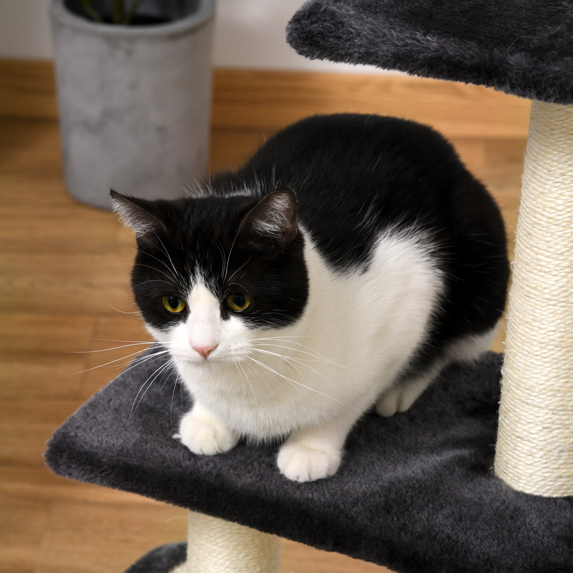 PawHut Kratzbaum 72 cm Katzenturm mit Plüschballen, Sisalstämme, Plattform, Kratzbrett mehrstöckiger Katzenkratzbaum, Kletterbaum, für mittelgroße Katzen, Grau