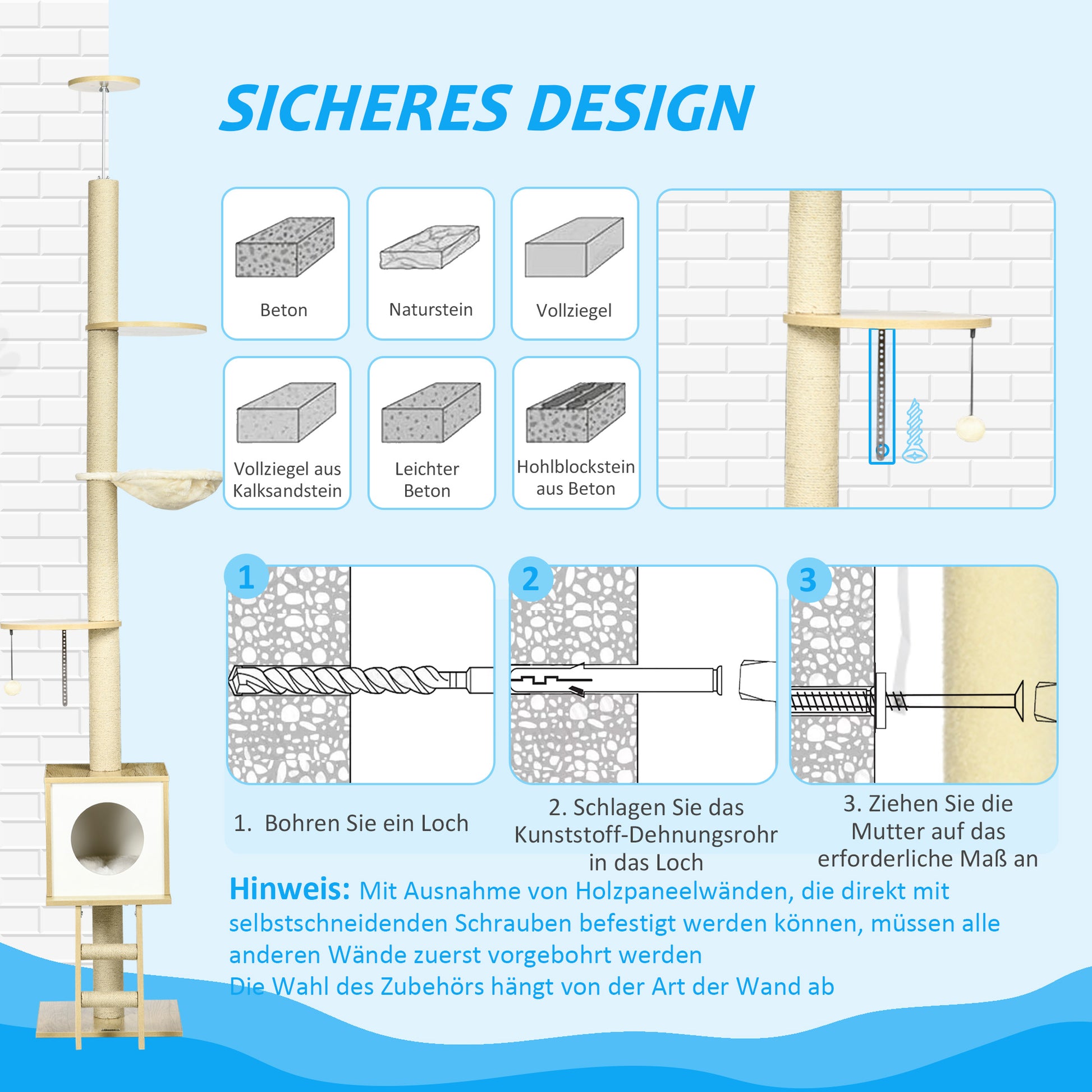 - ✔ Die Kratzstämme mit Juteseil befriedigen den Kratzinstinkt der Katze und halten sie davon ab, Ihre Möbel zu beschädigen