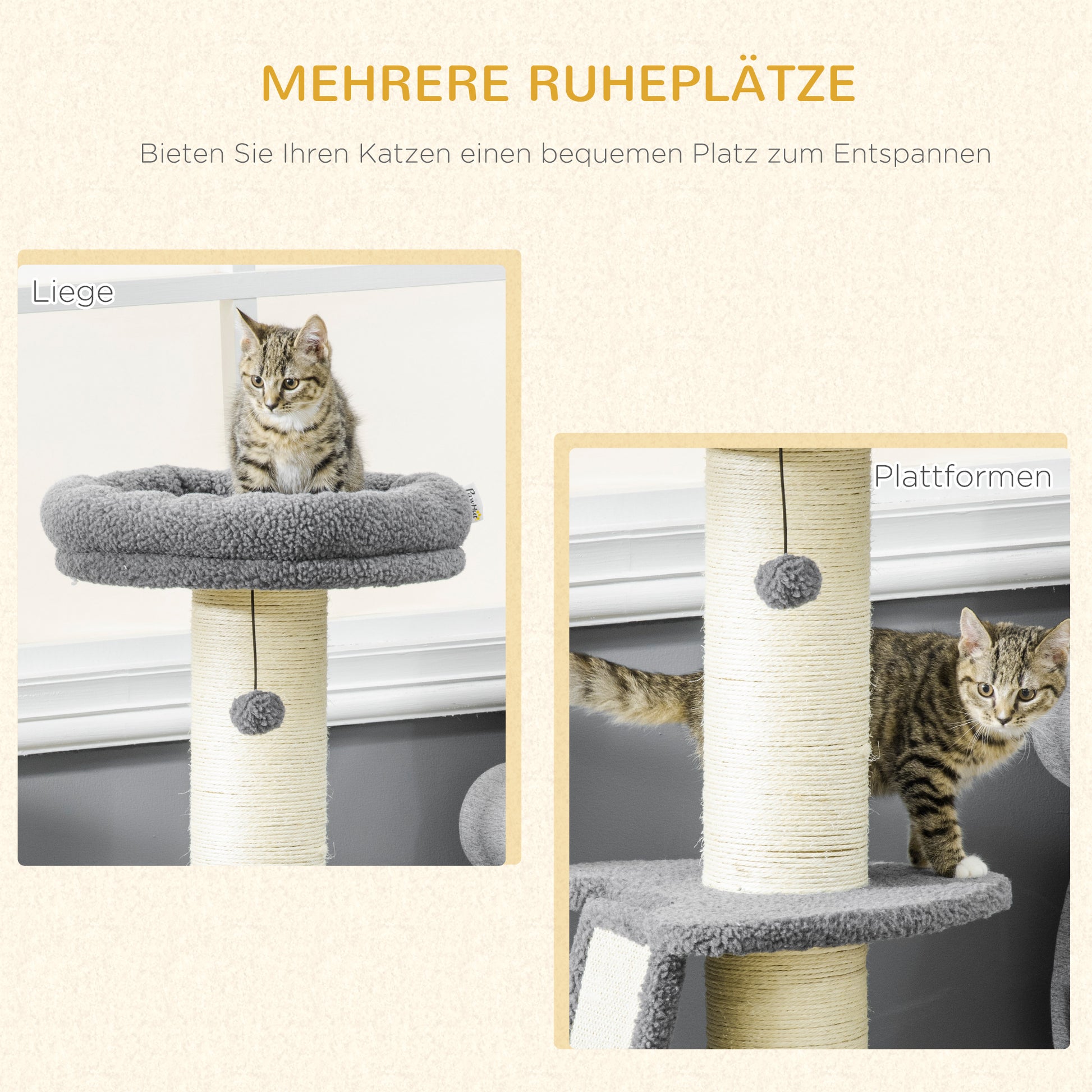 PawHut Kratzbaum, en plattform, hängande Spielball, Sisal, dunkelgrau+cremeweiß, 48 x 48 x 92cm