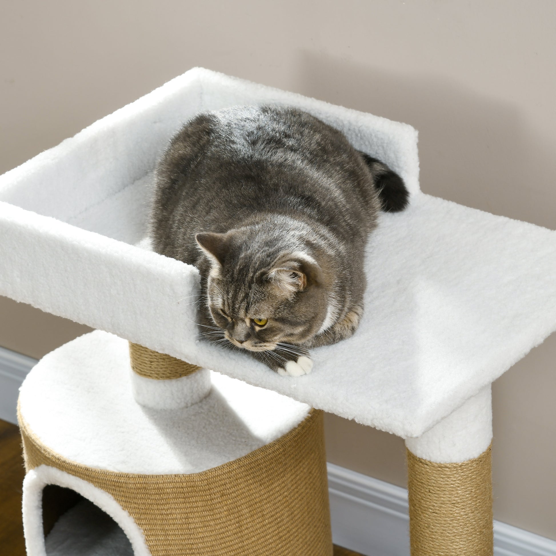 PawHut Kratzbaum Katzenbaum Katzenhöhle, 1 Katzenhöhle, 1 Liegefläche, 70 cm x 49 cm x 79 cm, Natur + Weiß