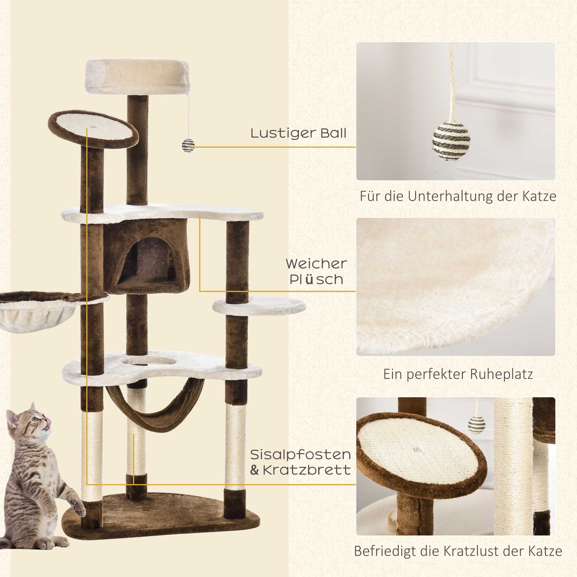 PawHut Kratzbaum mit Katzenhöhle Hängematte XXL Katzenbaum Kletterbaum Kletterbaum für Katzen Mehrstufiges Multiaktivitätszentrum Plüsch Braun 65 x 50 x 153 cm