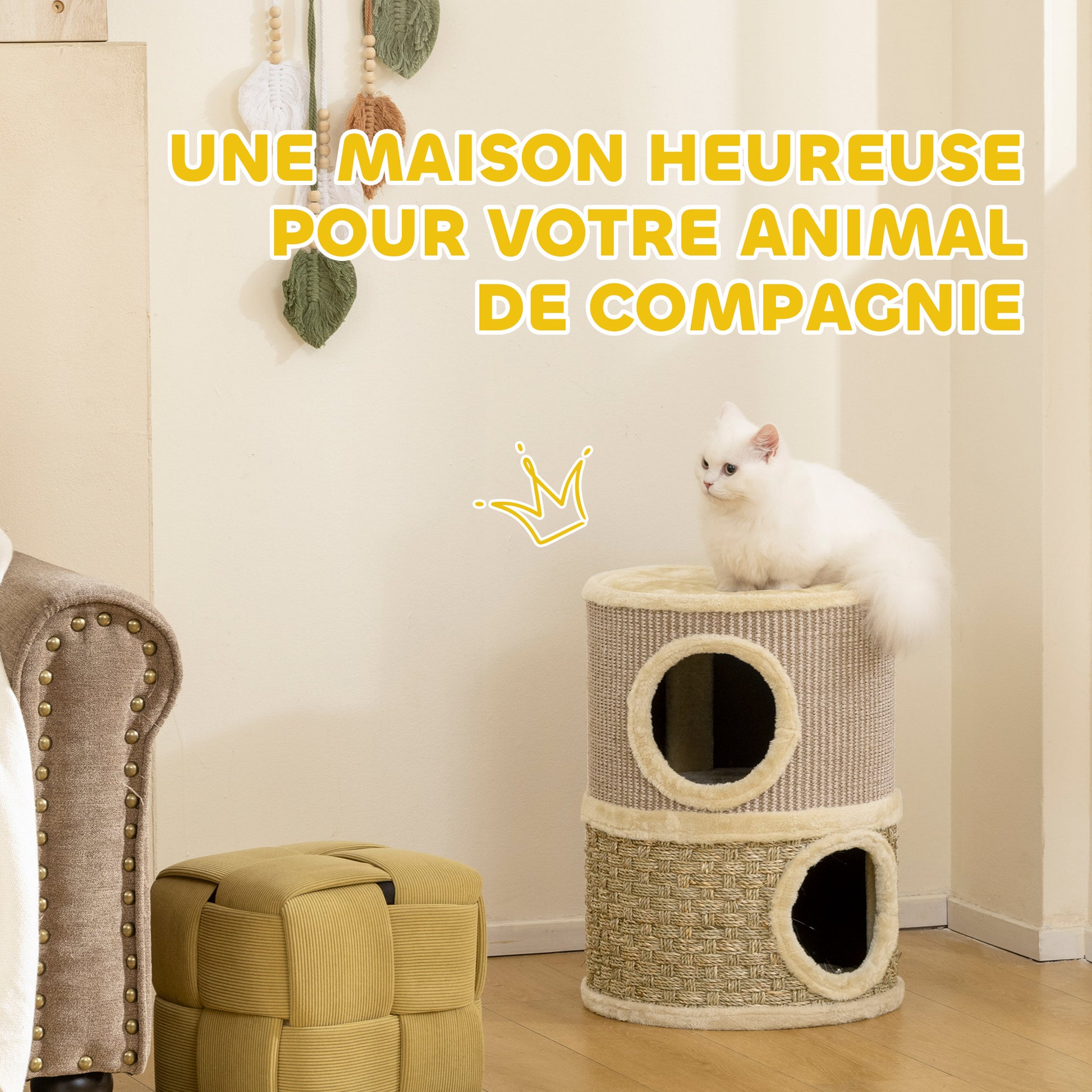 - ✔ Material: Spanplatte, Plüsch (100% Polyester), Sisal, Algen