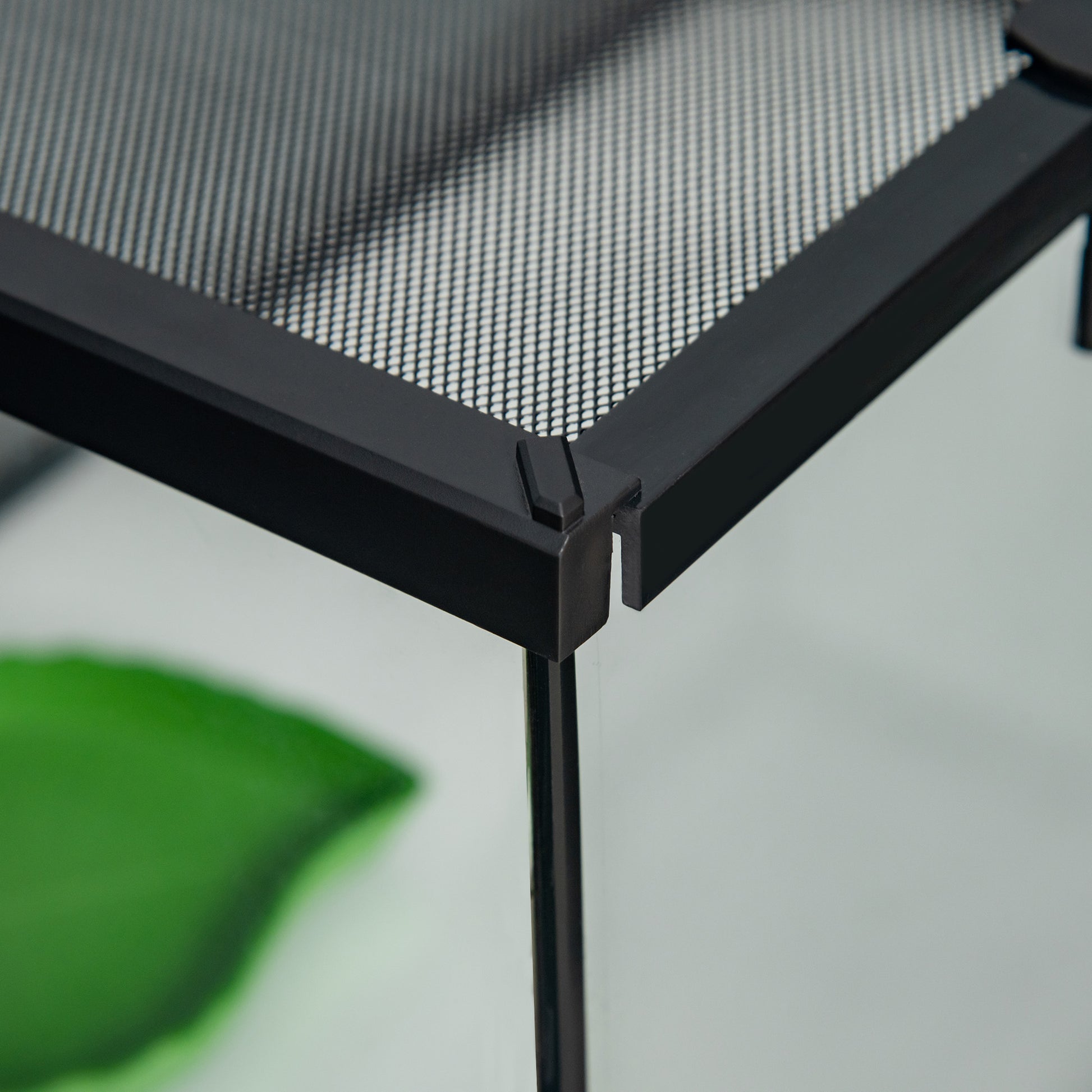 PawHut Reptilienbox Terrarium, inkl. Streifentermometer, Fütterungsklappen, 50 cm x 30 cm x 25 cm, Glas + Metall, Schwarz