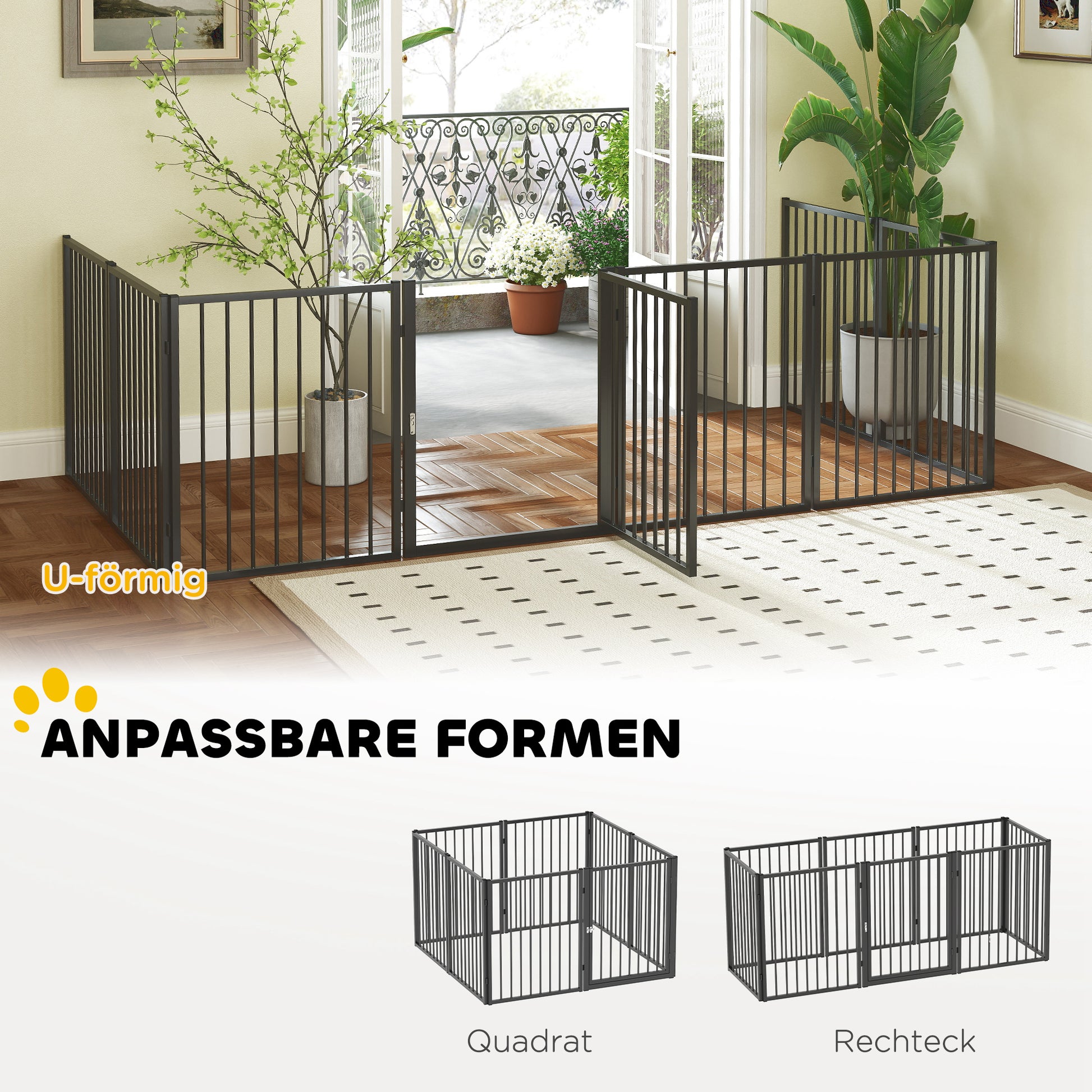 PawHut Welpenauslauf, Hundeauslauf, Welpengehege, 8 Paneele mit Tür, faltbarer och tragbarer Hundezaun, Stahl, Schwarz
