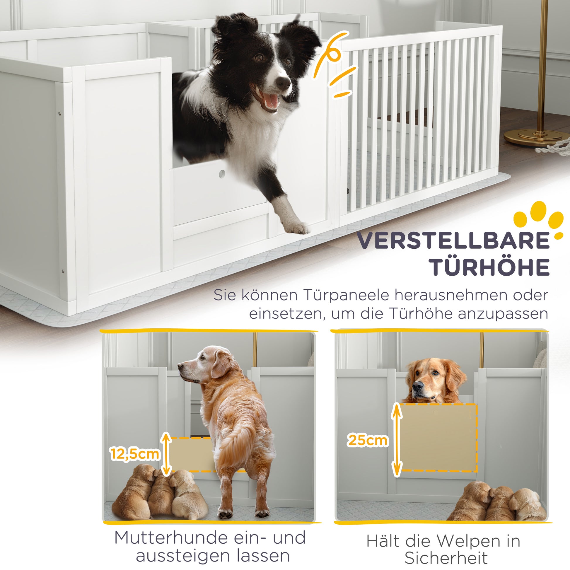 PawHut Wurfbox für Welpen, mit Unterlage, Leicht zu reinigen, Holz, 166x80x50 cm, Weiß