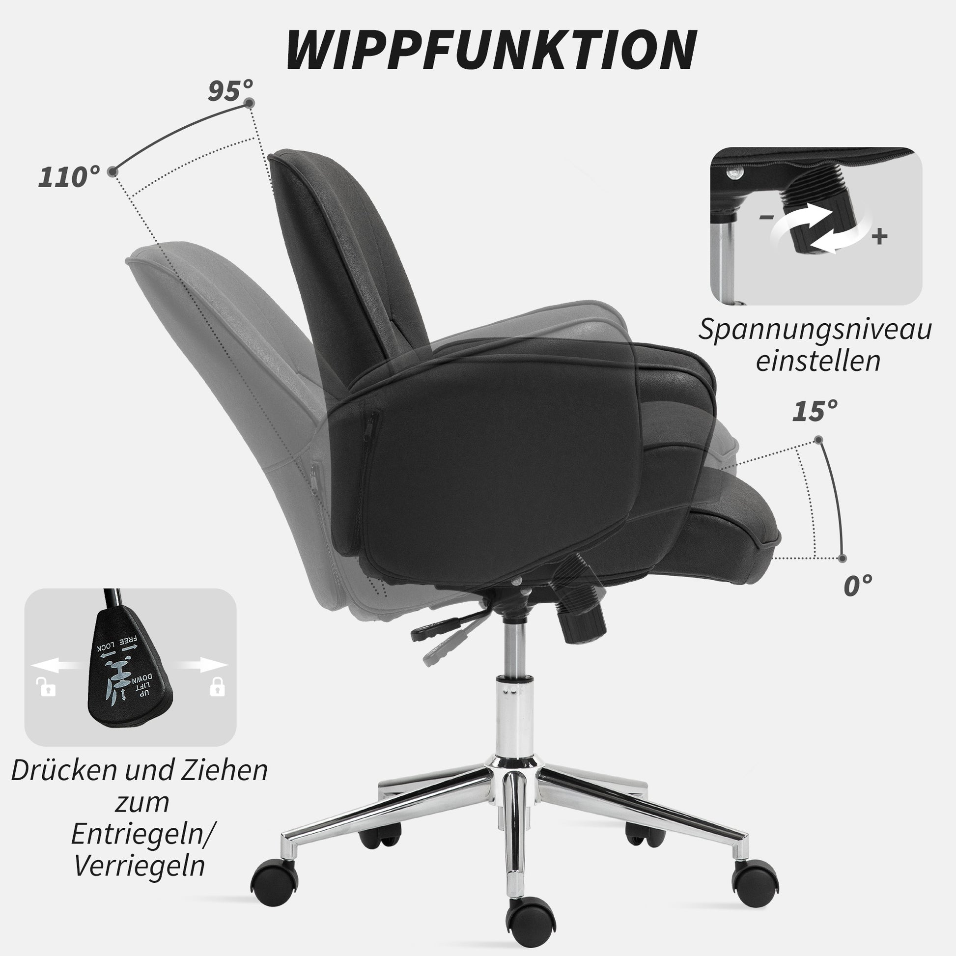 - ✔ Wippfunktion des Arbeitsstuhls zur Entlastung des Rückens