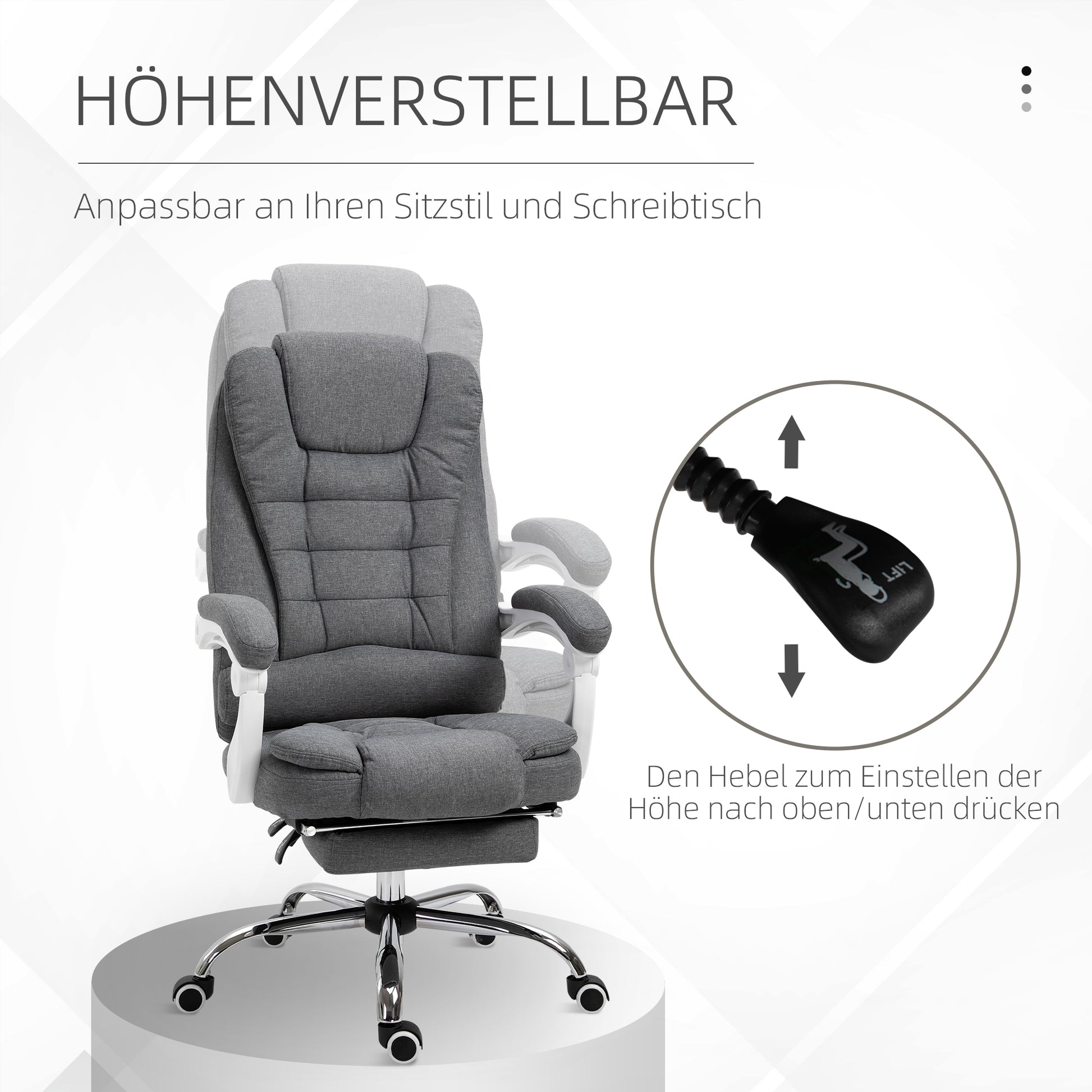 Vinsetto Bürostuhl mit ausklappbarer Fußstütze, Chefsessel, verstellbare Rückenlehne, Leinenoptik, Grau