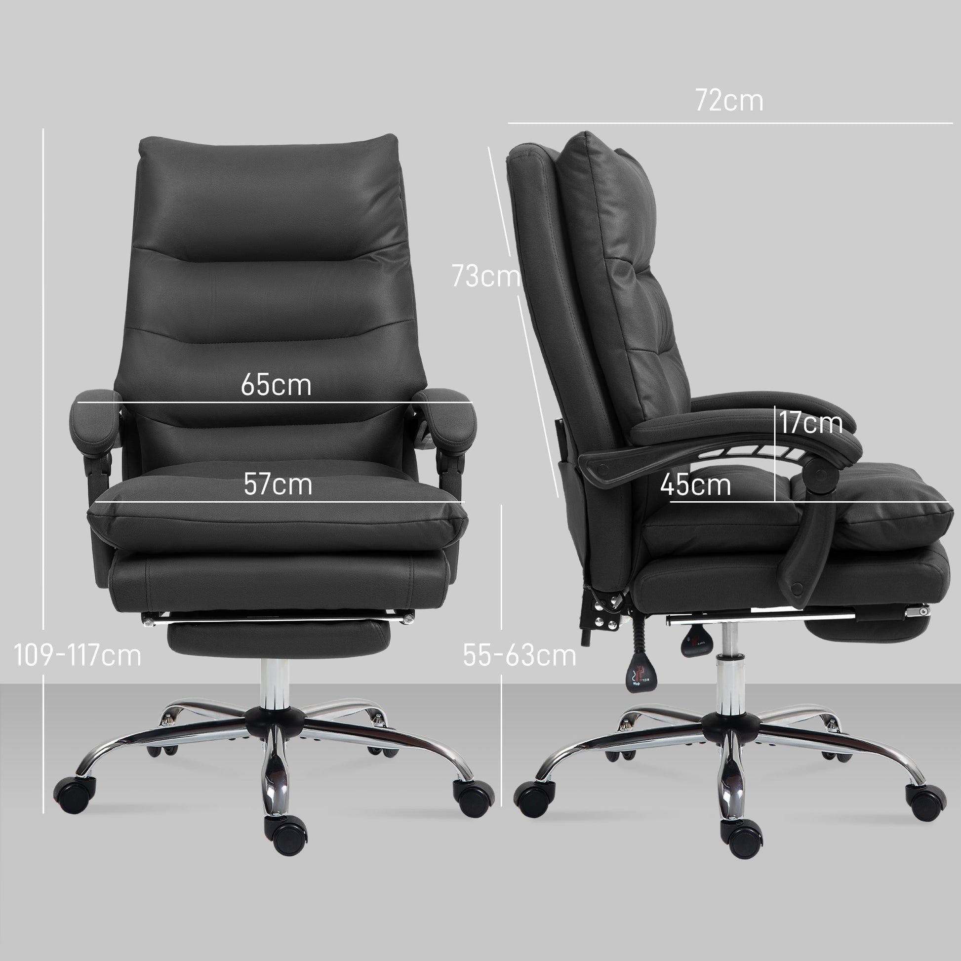 Vinsetto Bürostuhl med Massagefunktion, Beheizbar, Neigbar, Konstleder, 65x72x109-117cm, Schwarz