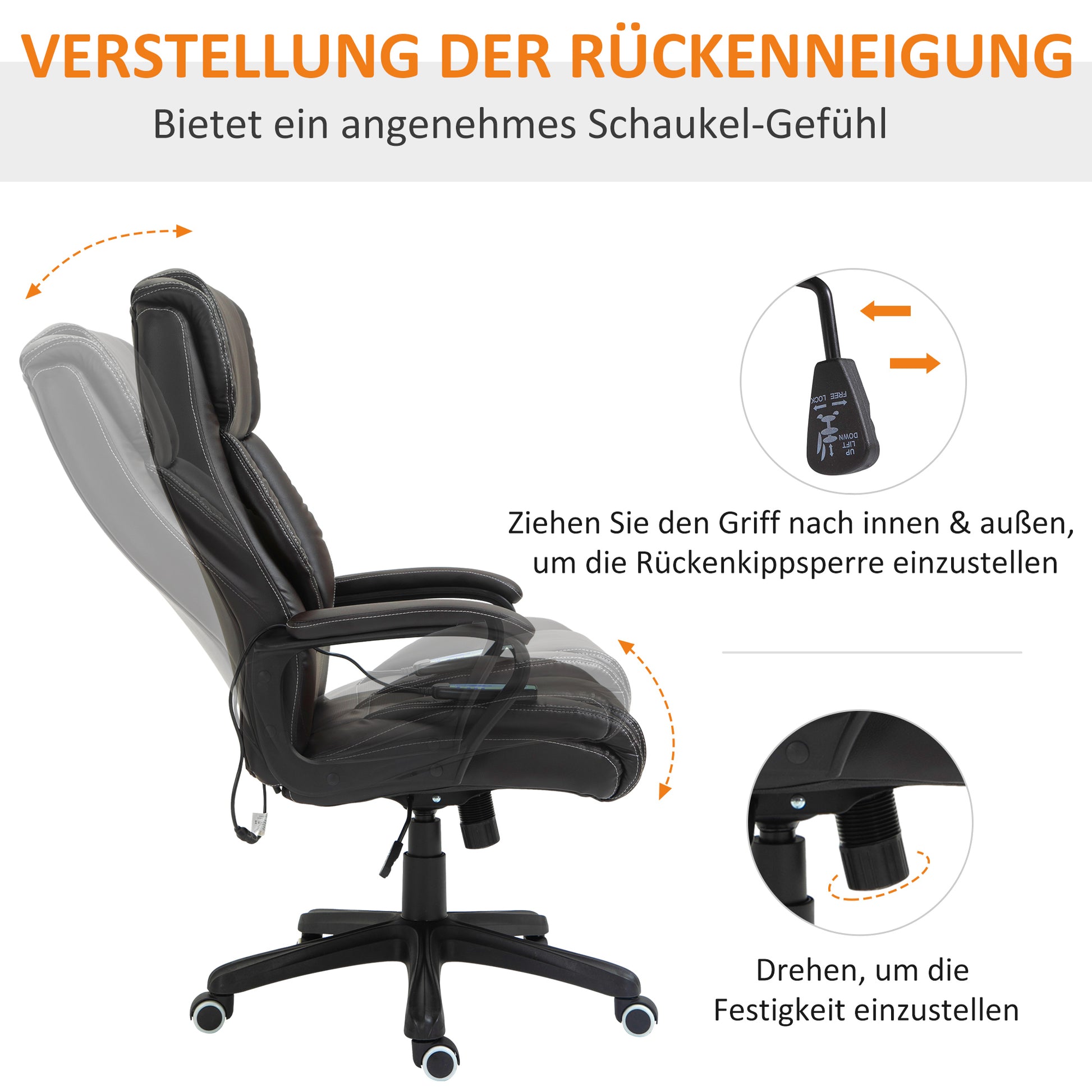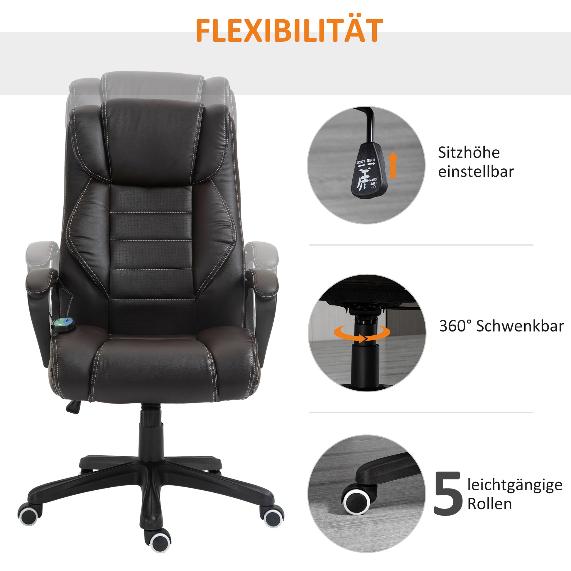 Vinsetto Bürostuhl med Massagefunktion, Höhenverstellbarer Chefsessel, ergonomisk Drehstuhl, 6 Vibrationspunkte, Braun