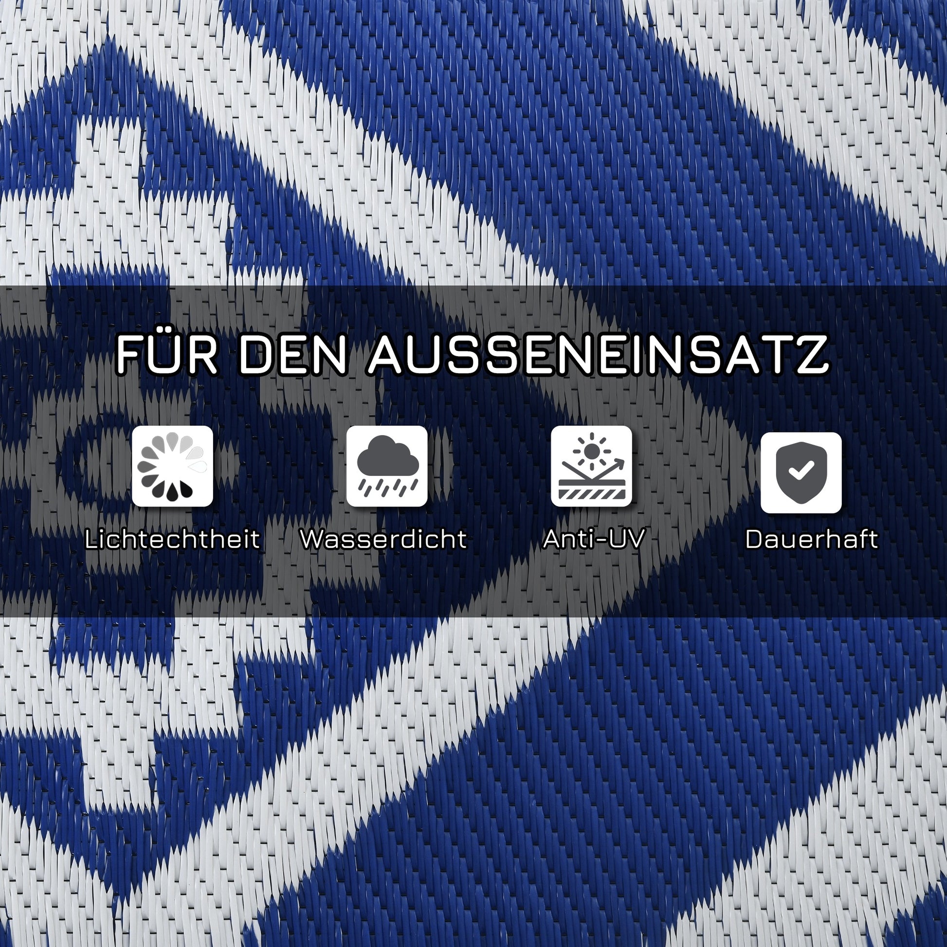 Outsunny Outdoorteppich Terrassenteppich، wetterbeständig، تصميم عصري، 182 سم × 274 سم × 0,3 سم، Blau + Weiß