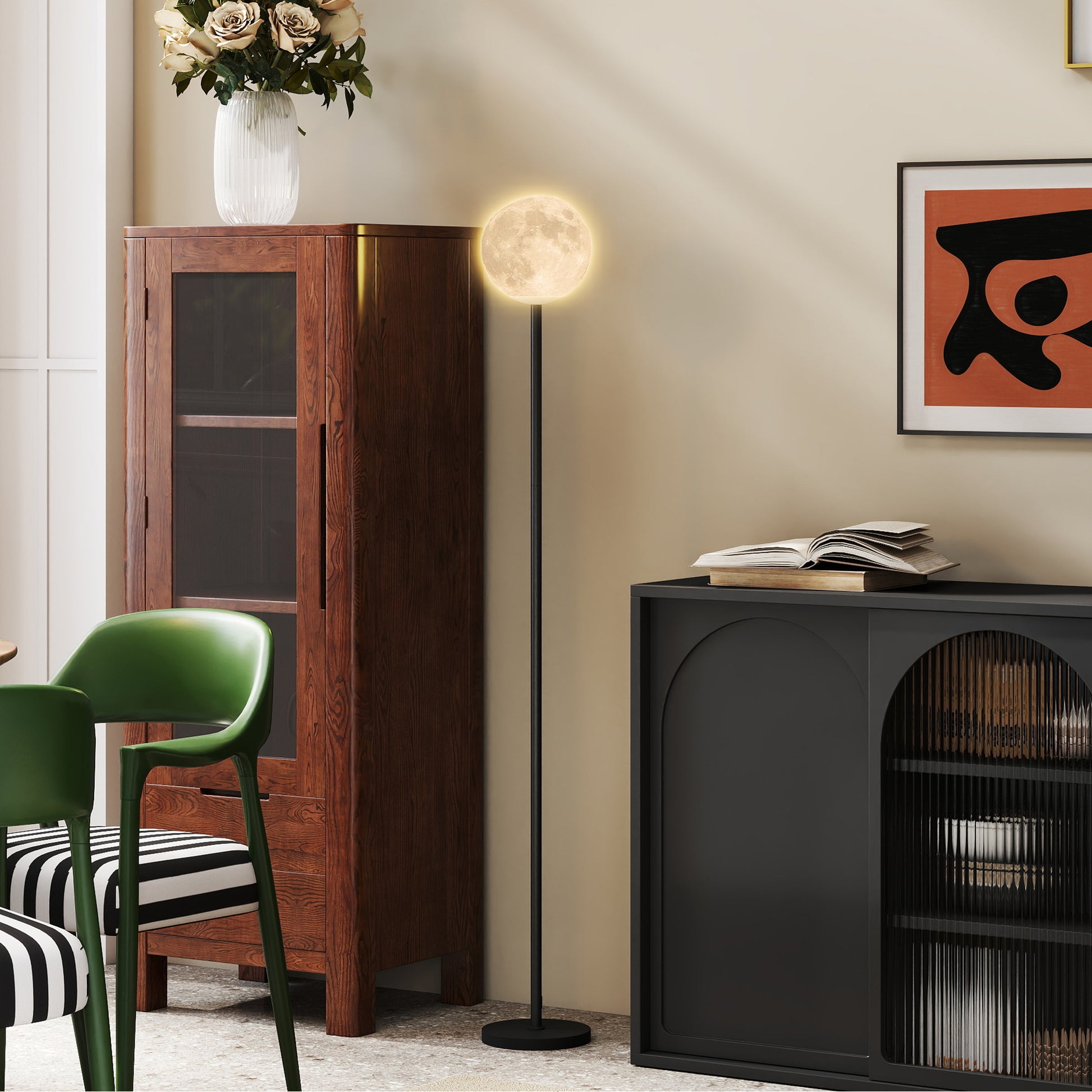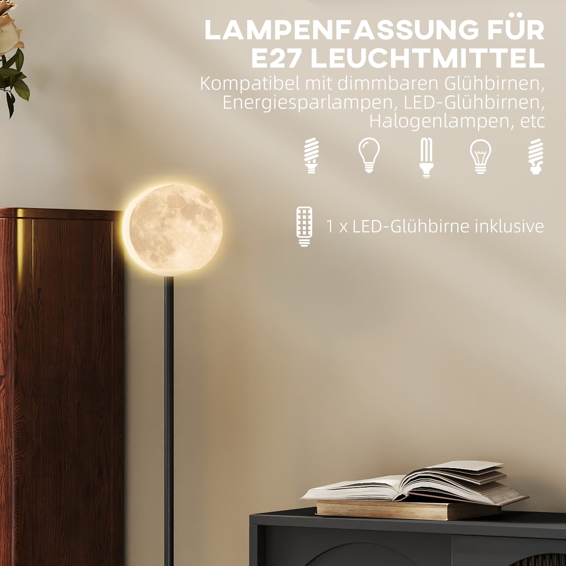 - ✔ Der 3D-Technologie-Mondlampenschirm der Standleuchte zeigt schöne Texturen, wenn er beleuchtet ist