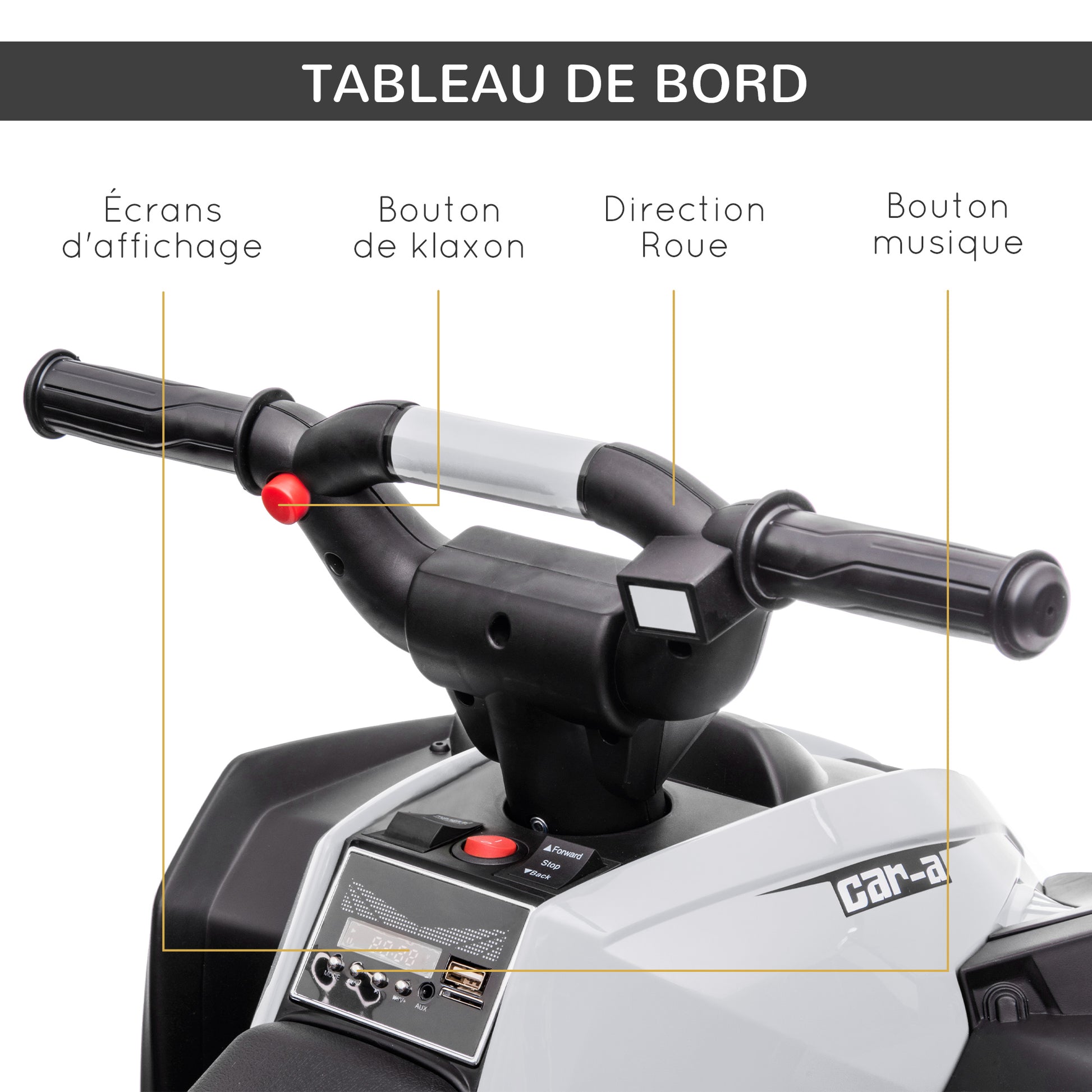 HOMCOM Kinder-Quad Elektrisches Kinderauto, 6 km/h, Sound- und Lichteffekte, : 83 cm x 53 cm x 55,5 cm, Schwarz + Weiß