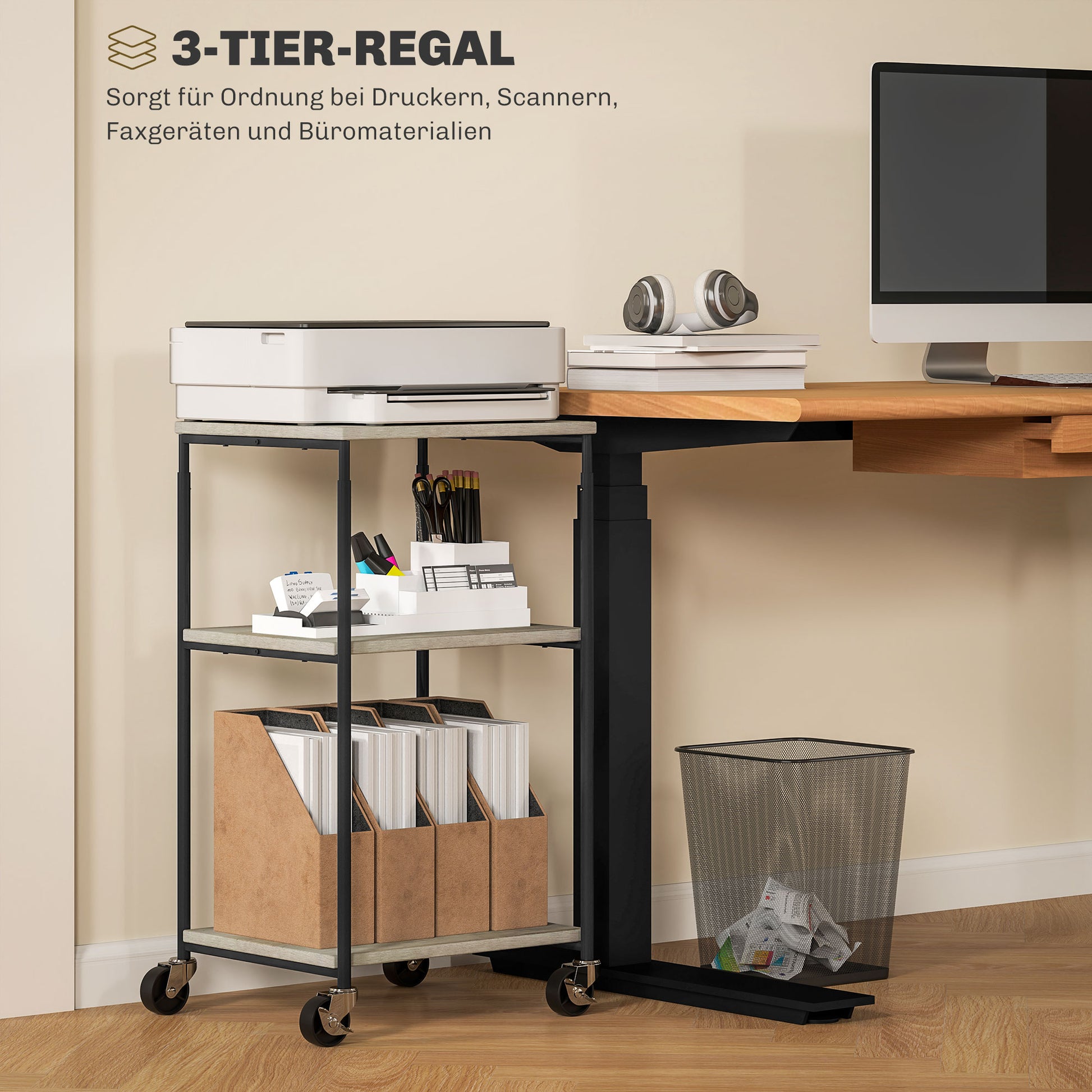 Erleben Sie die Multifunktionalität des HOMCOM Druckerständers. Der Druckerhalter bietet ein dreistufiges Ablagesystem mit zweifach verstellbarer Höhe, damit Sie alles schnell zur Hand haben. Mühelos lässt er sich auf vier Rollen bewegen, wobei zwei Bremsen die Stabilität sichern. Organisieren Sie Ihren Arbeitsplatz effizient mit dem HOMCOM Druckertisch.