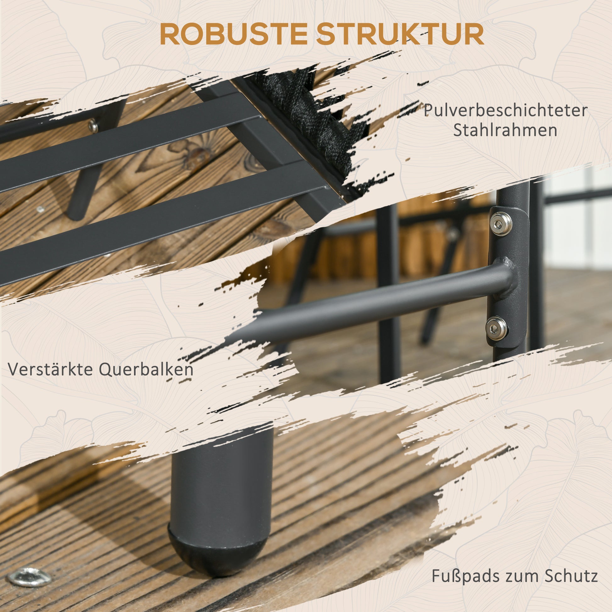 - ✔ Pulverbeschichteter Stahlrahmen mit Querstreben garantiert Stabilität der Gartenstühle
