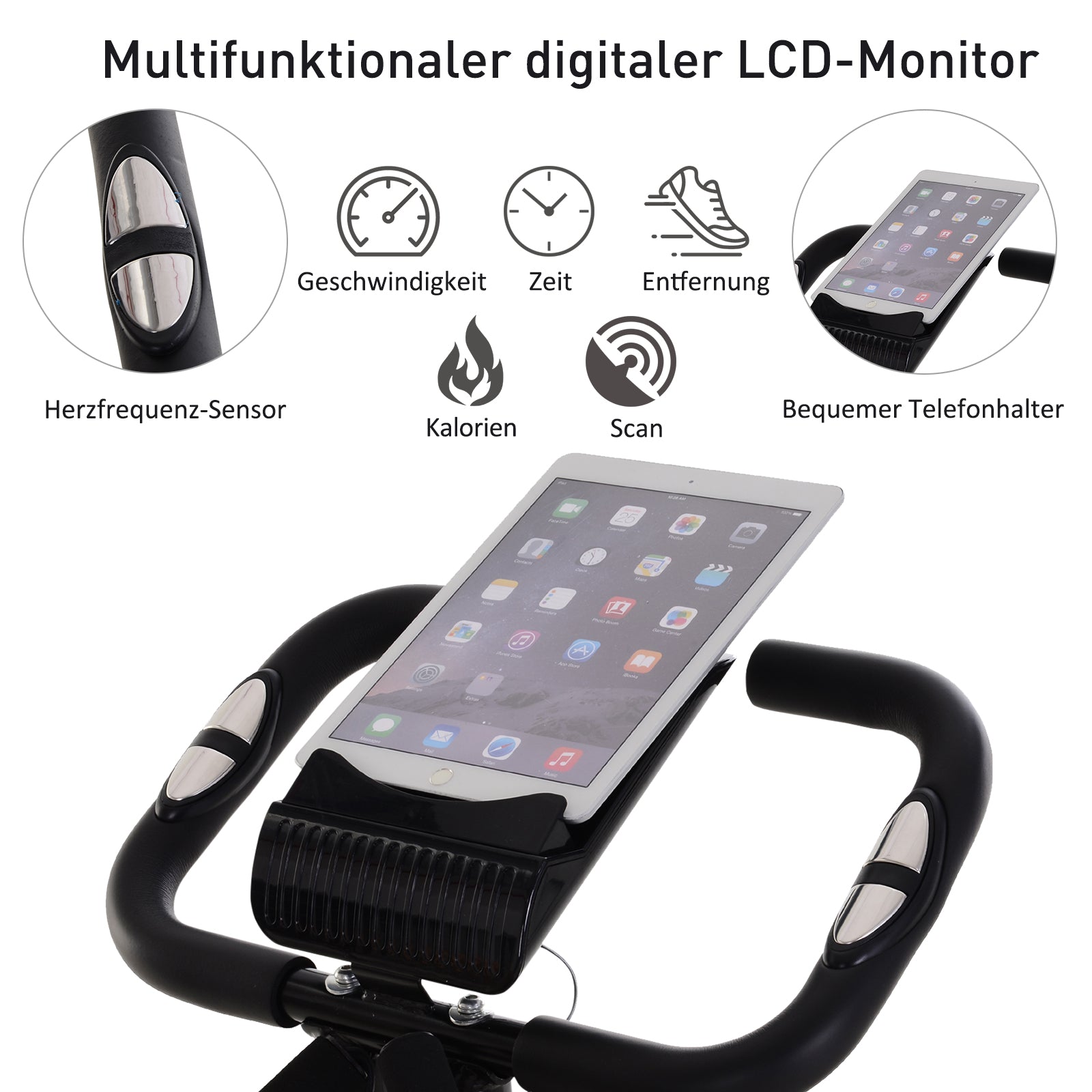HOMCOM Heimtrainer X-Bike 2-in-1 Fahrradtrainer mit LCD-Display,Pulsmesser, klappbarer Hometrainer Trimmrad mit 8 stufig Magnetwiderstand, 1 Paar Spannseil, Stahl Schwarz 105x48x118 cm