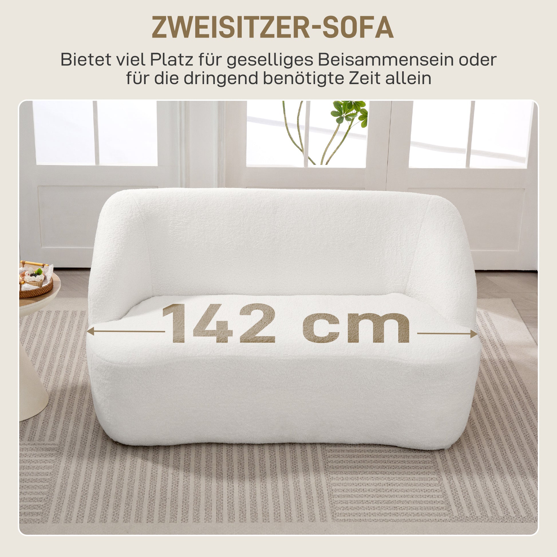 HOMCOM 2-Sitzer-Sofa, geschwungenes Design, Polstersofa mit Fleece-Bezug, für Wohnzimmer, Schlafzimmer, Homeoffice, Cremeweiß