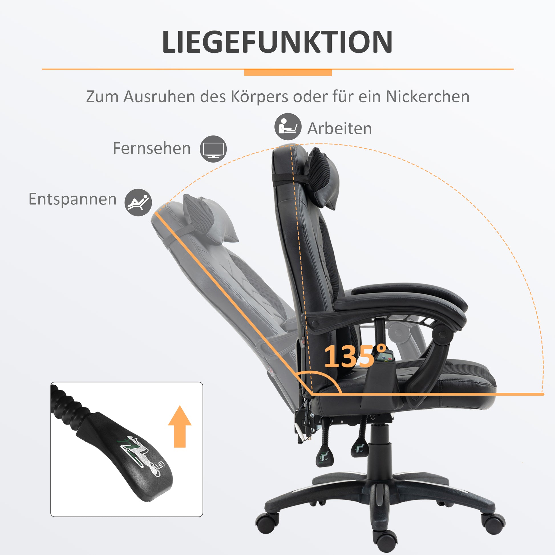 - ✔ 6 vibrierende Massagepunkte: 4 an der Rückenlehne und 2 an der Sitzlehne.