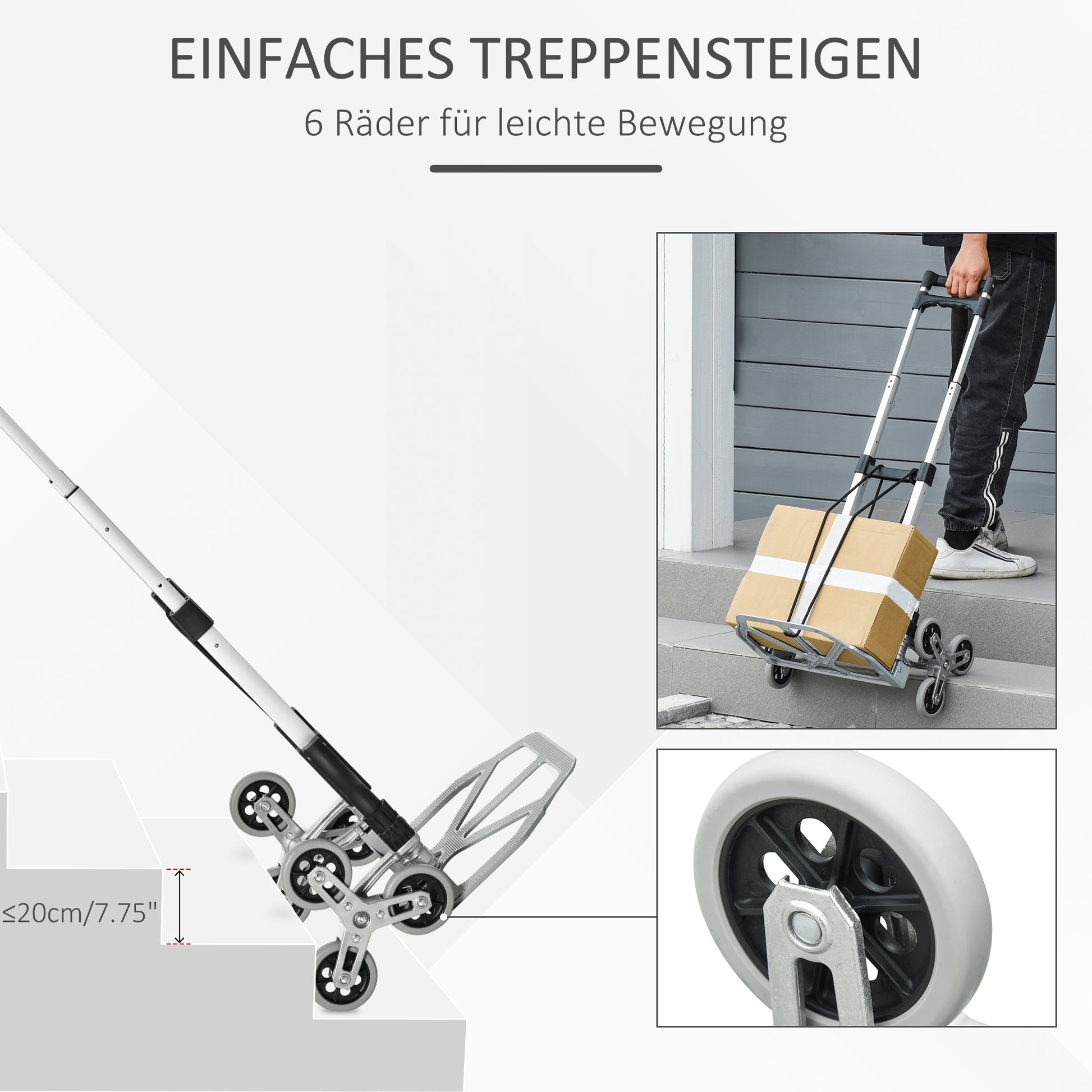 DURHAND Klappbarer Treppensteiger mit 6 Rädern, inkl. Befestigungsgurt, automatische Klappfunktion, Silber + Schwarz