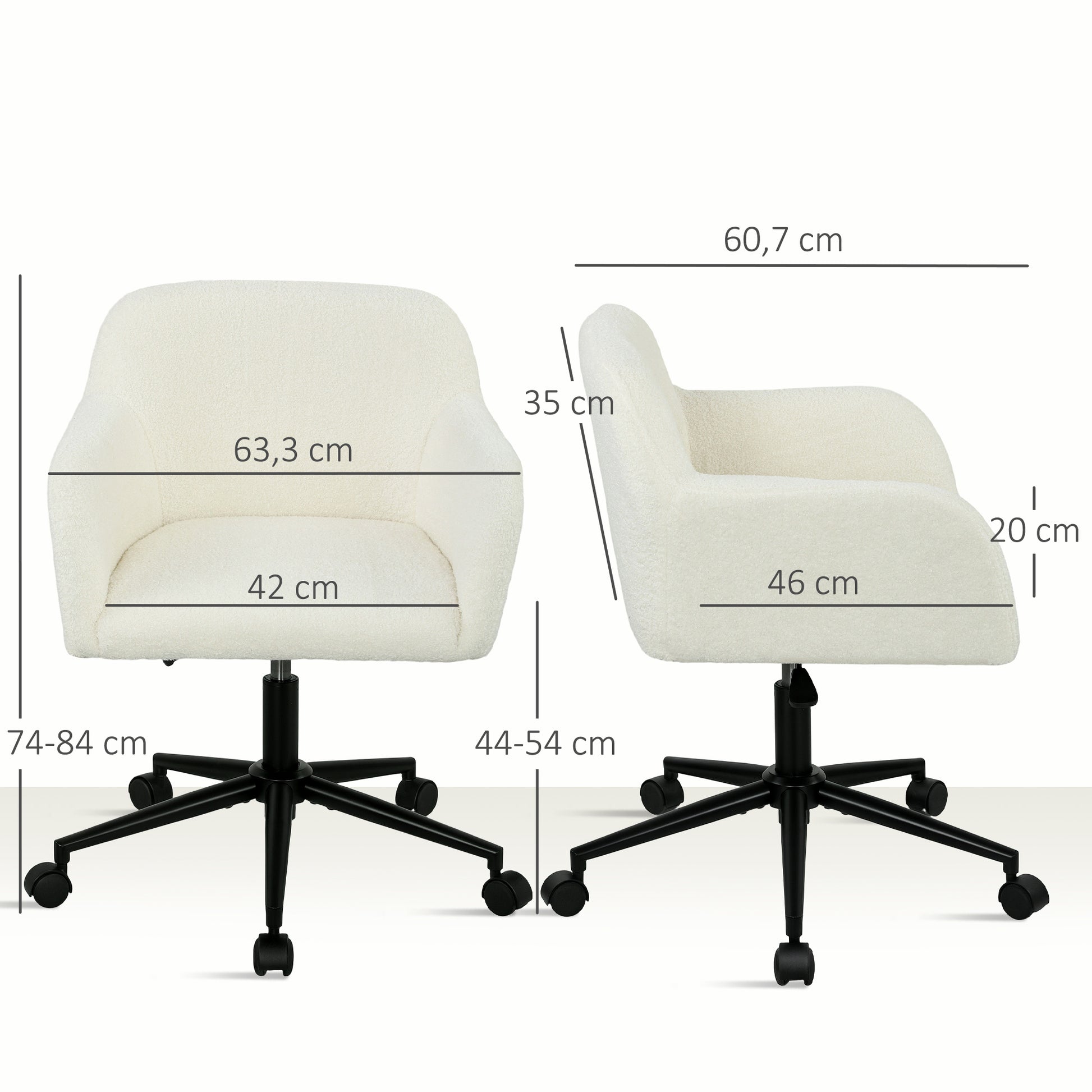 HOMCOM Drehbarer Bürostuhl mit Rollen, Schreibtischstuhl, Fleece-Stoff, Schaumstoff, höhenverstellbar, Homeoffice, Cremeweiß