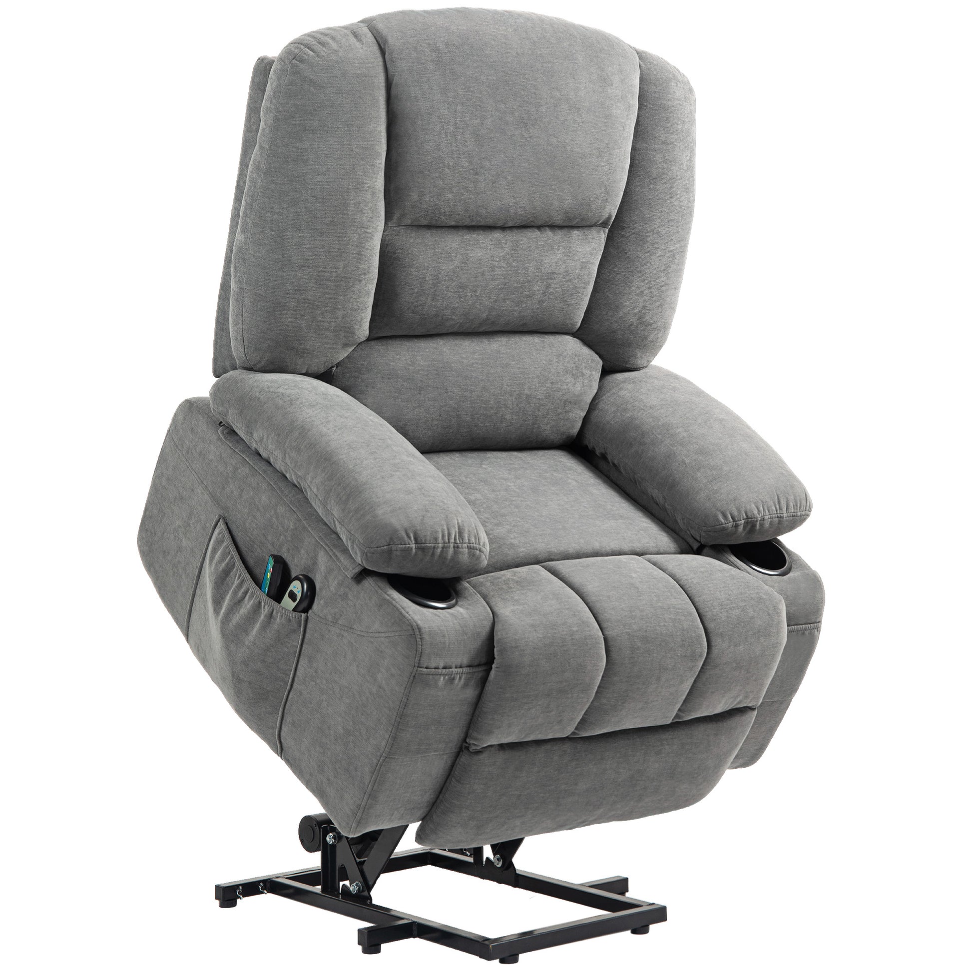 HOMCOM Elektrischer Relaxsessel mit Aufstehhilfe, Massagesessel mit Wärmefunktionen, 2 Fernbedienungen, weicher Schaumstoff