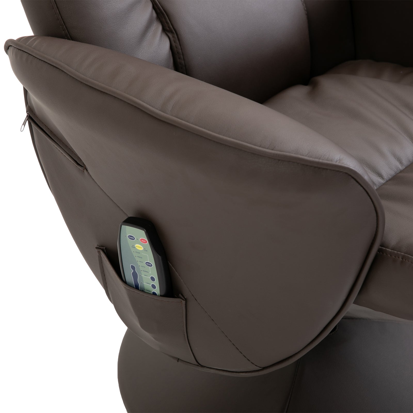 HOMCOM Relaxsessel mit Hocker, drehbarer Fernsehsessel mit 10 Massagepunkte, Liegefunktion, Massagesessel mit Fernbedienung, Seitentasche, TV-Sessel, Kunstleder, Braun