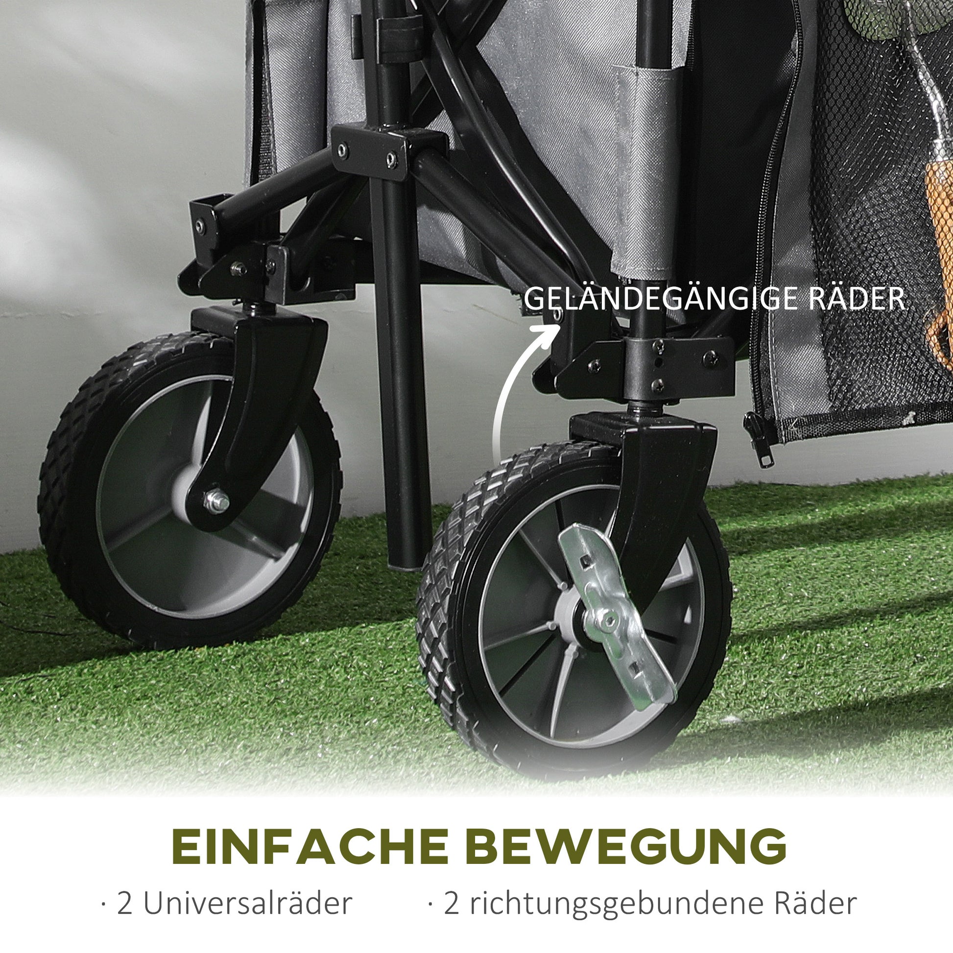 Outsunny Bollerwagen, klappbar, 5 Seitentaschen, verstellbarer Griff, bis 120 kg, Stahl, dunkelgrau, 100 x 55 x 93 cm
