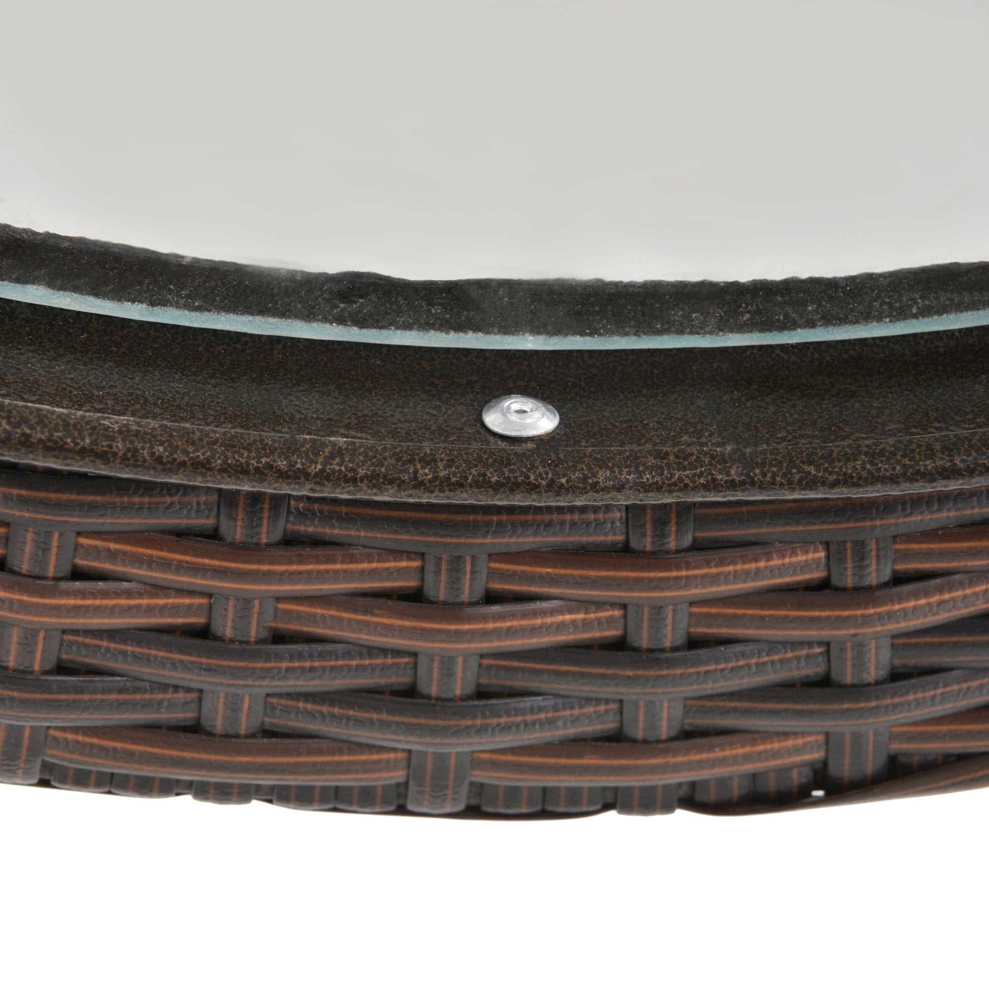 - ✔ Besteht aus rostfreiem Stahlrahmen, Hartglastischplatte und Kunstrattangeflecht